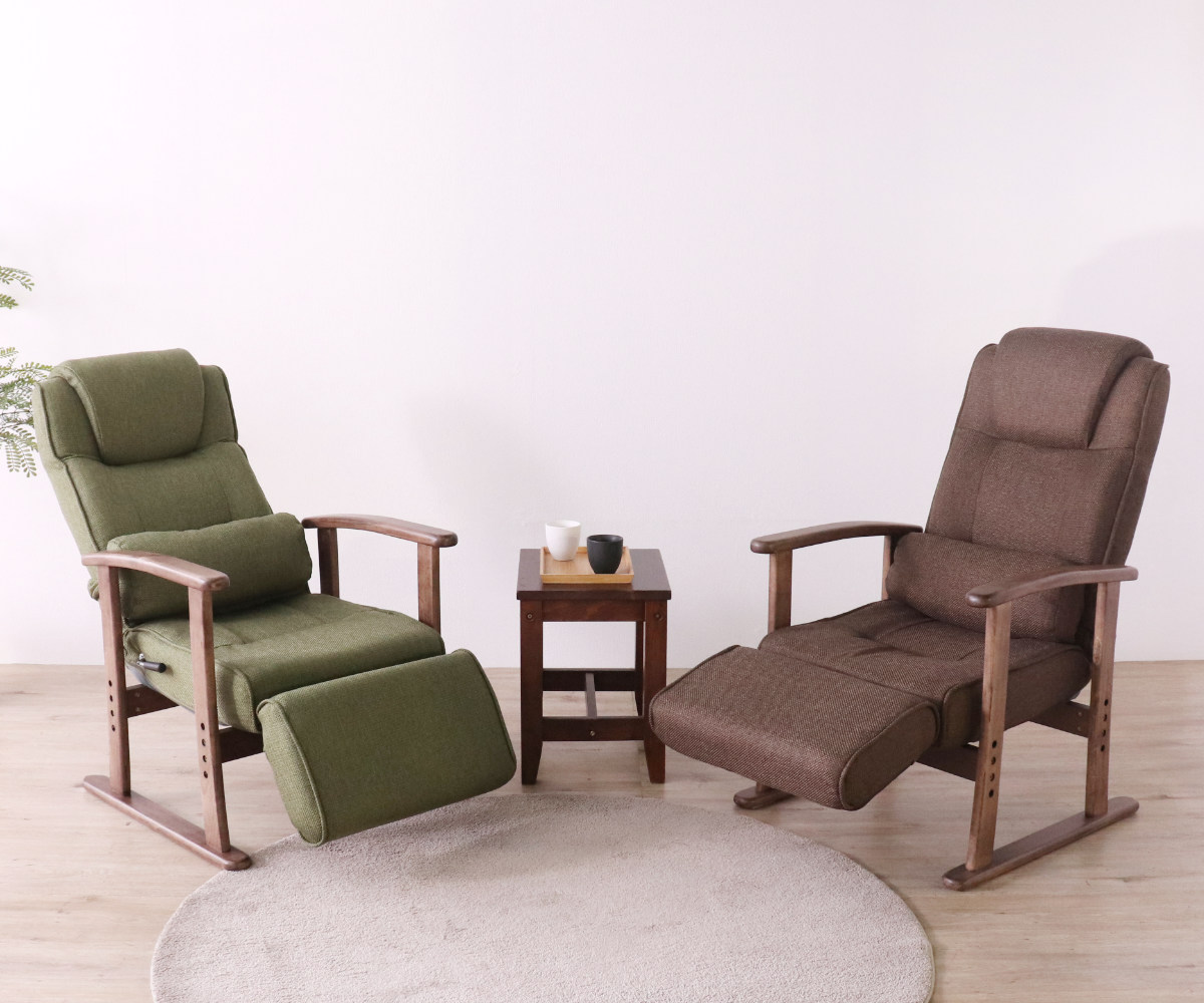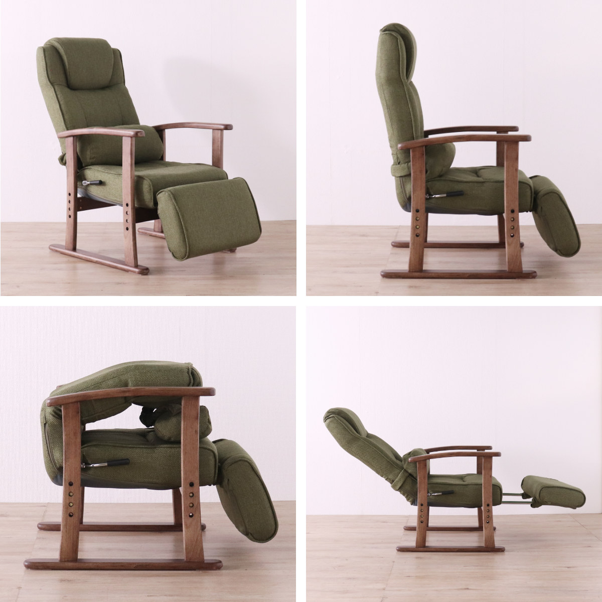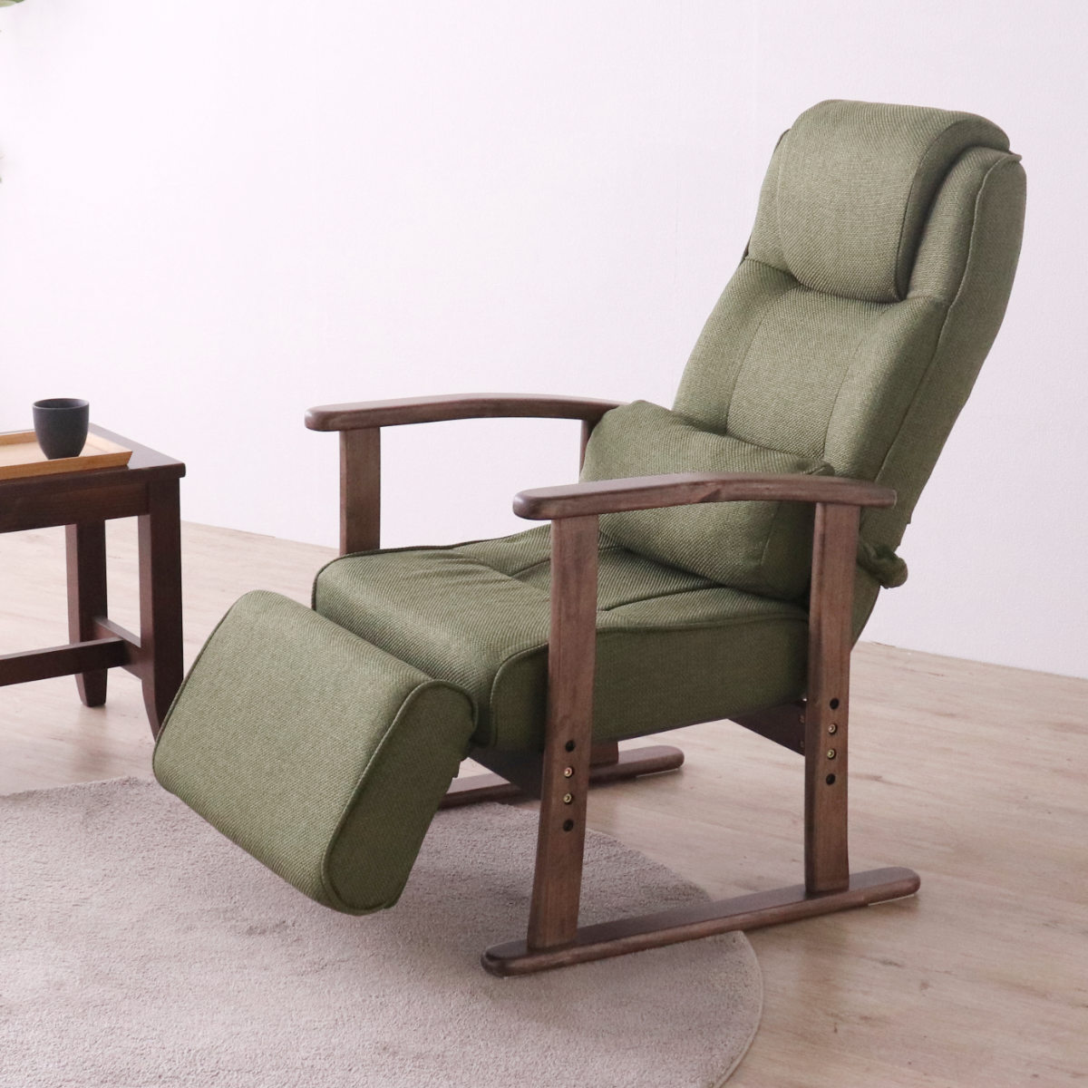高座椅子 ハイバック フットレスト付 座面3段階調整 ポケットコイル ルーム ( 座椅子 リクライニング 7段階 フットレスト ヘッドレスト 角度調節 肘付き 高さ調整 1人掛け チェア 椅子 リラックス ファブリック ) 【グリーン】