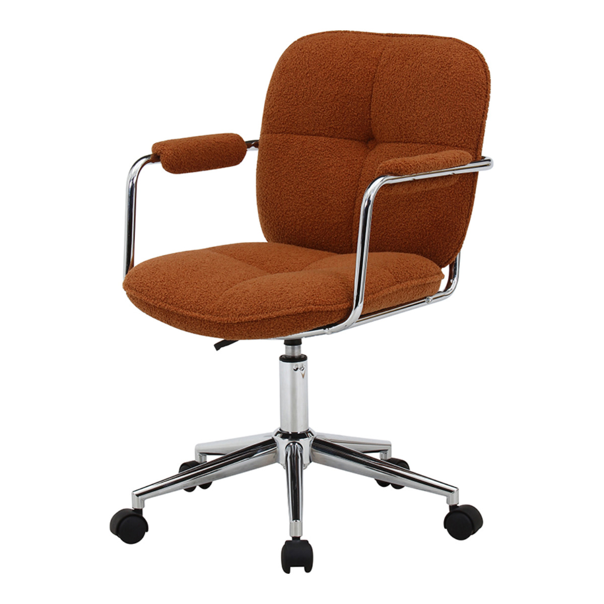オフィスチェア 昇降式 座面高45~54cm ルル ( ワークチェア パソコンチェア 学習椅子 高さ調節 回転 ブークレ生地 もこもこ 在宅 仕事 勉強 座り心地 快適 勉強椅子 イス 椅子 オフィス キャスター付き ) 【オレンジ】