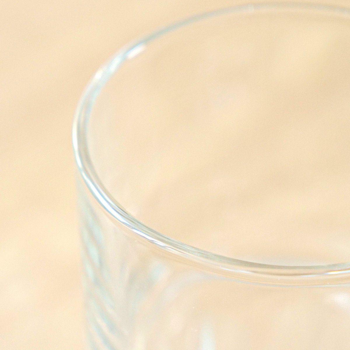 グラス全体の耐久性と口元の安全性が高まり、日常使いや業務用に適した、割れにくく長持ちするグラスです。万が一割れた場合でも、鋭利な破片になりにくく、飛散しにくいため安心です。
