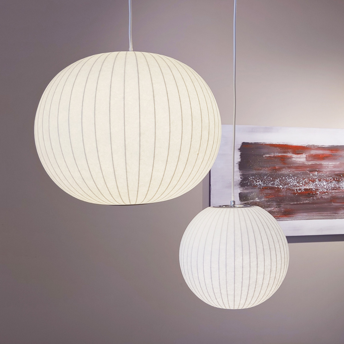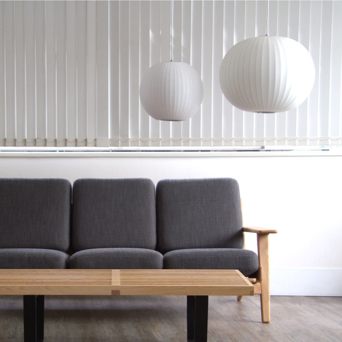 世界のミッドセンチュリーファンに圧倒的な人気を誇る、ジョージ・ネルソンのバブルランプです。シンプルながらもぱっと目を引く特徴的なフォルムがお部屋のアクセントに。和紙のようなシェードが電球を包み込み、ほわんとしたやわらかい灯りを灯します。