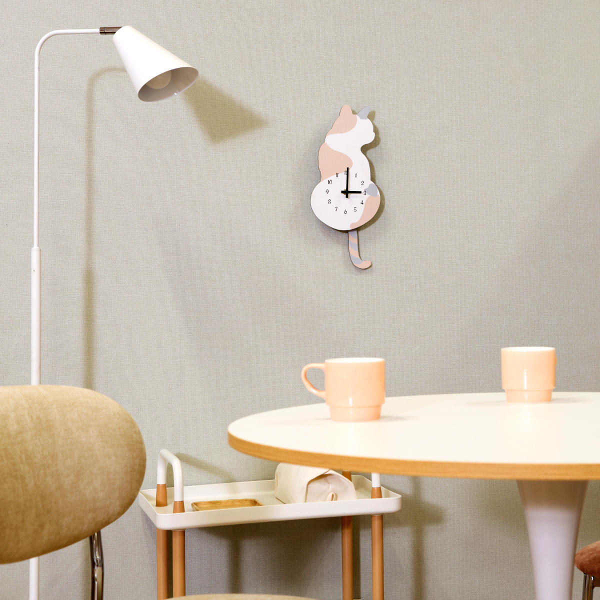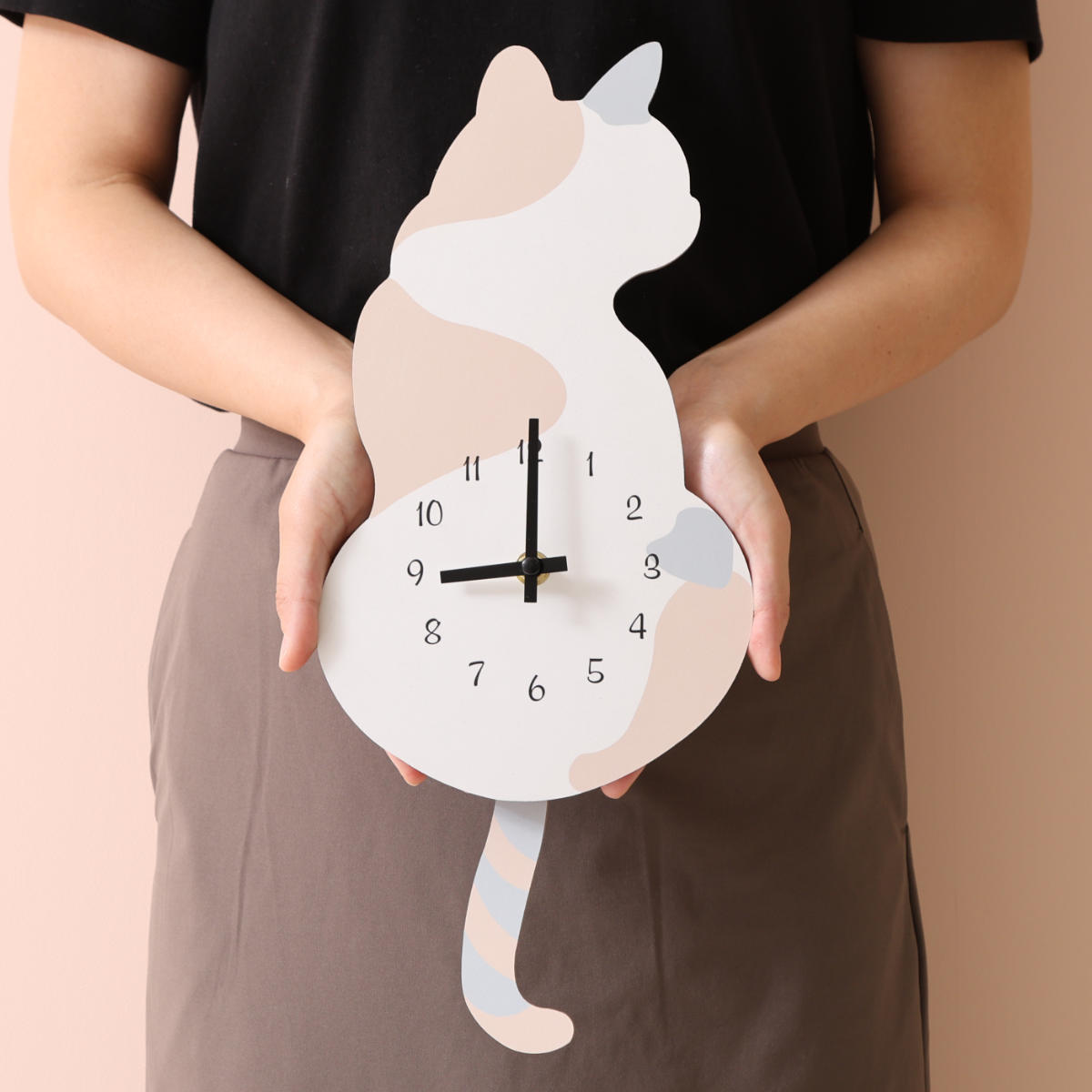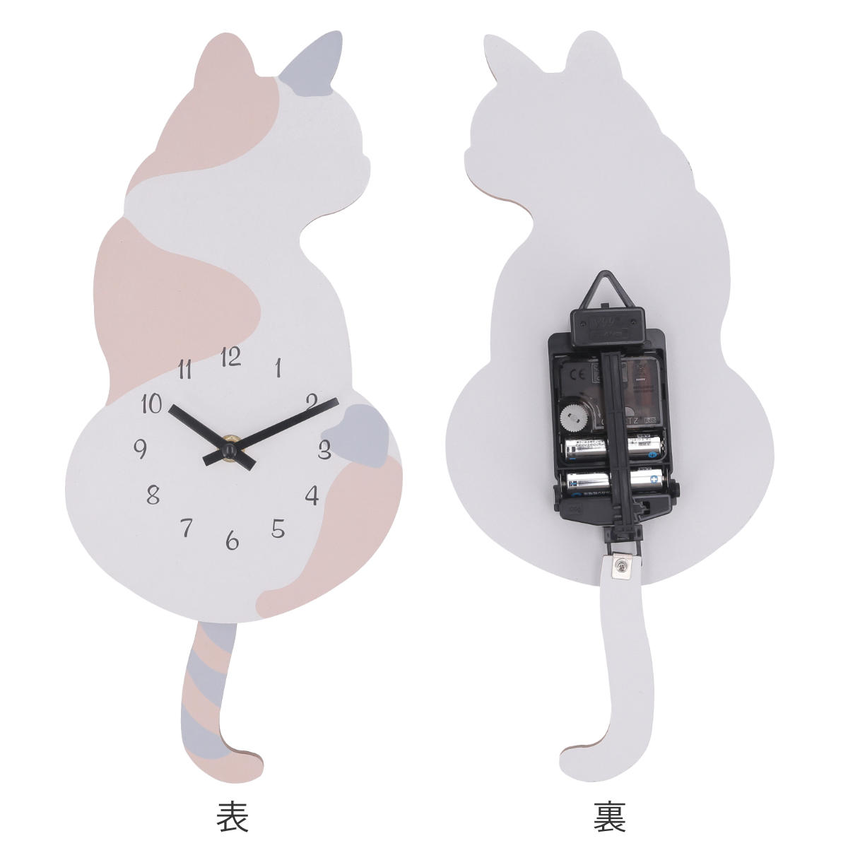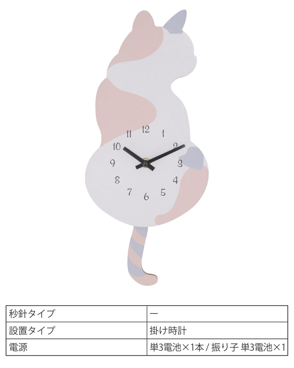 振り子時計 三毛猫 静音 掛け時計 秒針なし ( ウォールクロック 壁掛け時計 ねこ 猫 ネコ 時計 北欧 モダン かわいい 可愛い シンプル おしゃれ )