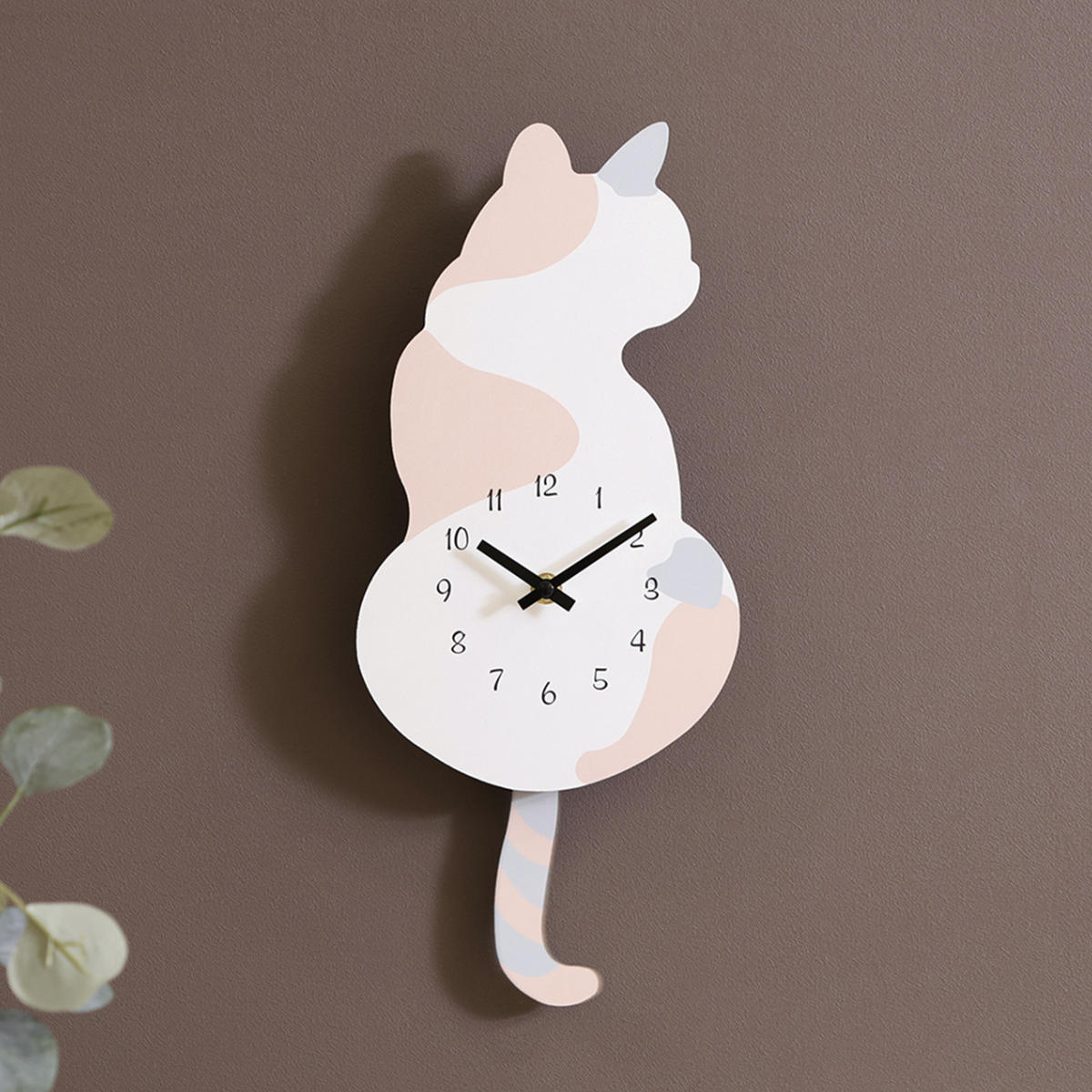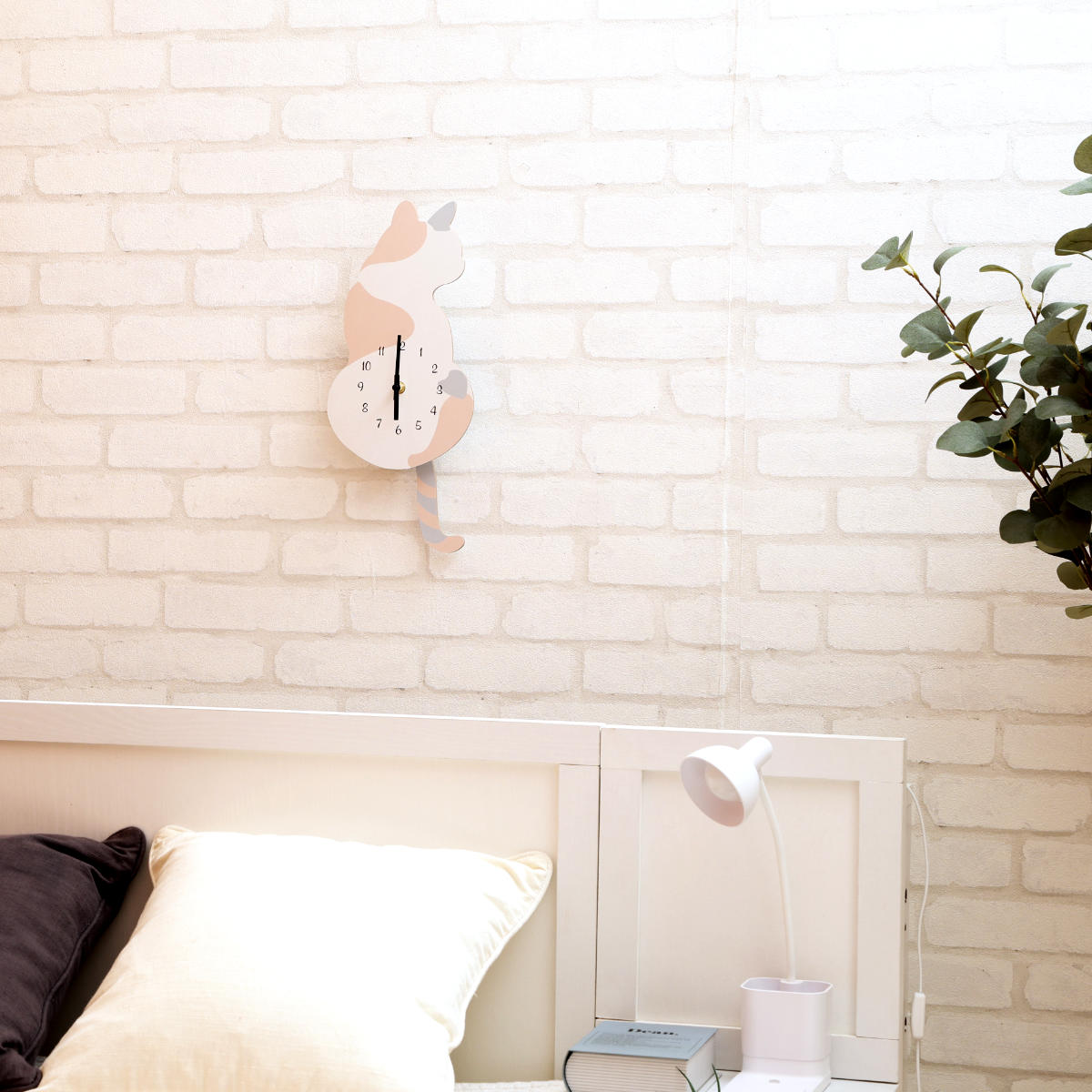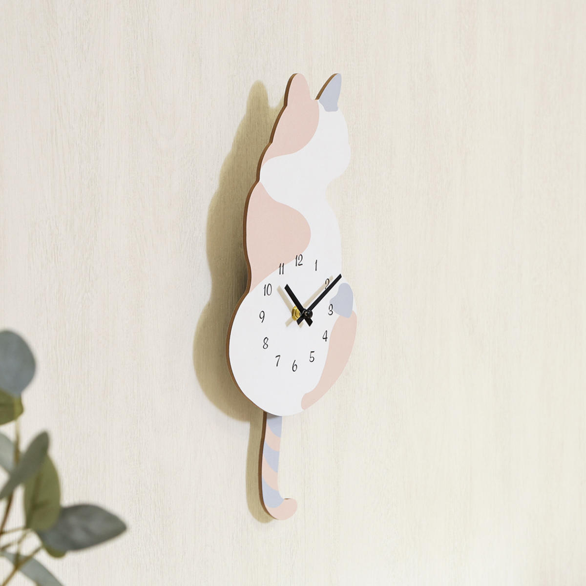 振り子時計 三毛猫 静音 掛け時計 秒針なし ( ウォールクロック 壁掛け時計 ねこ 猫 ネコ 時計 北欧 モダン かわいい 可愛い シンプル おしゃれ )