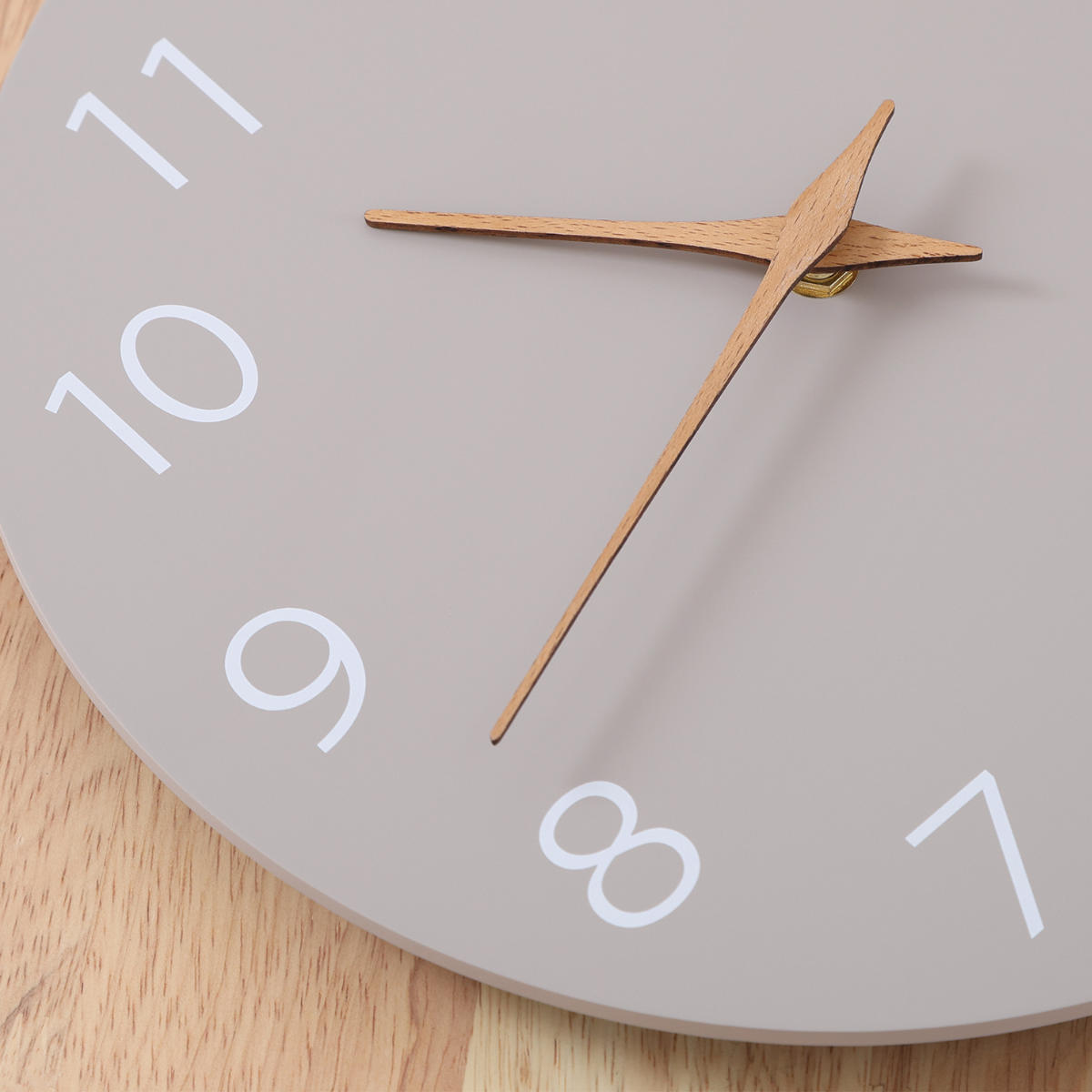 木製の針は素朴な優しさを演出。秒針がないのでスッキリして見え、視認性もばっちりです。