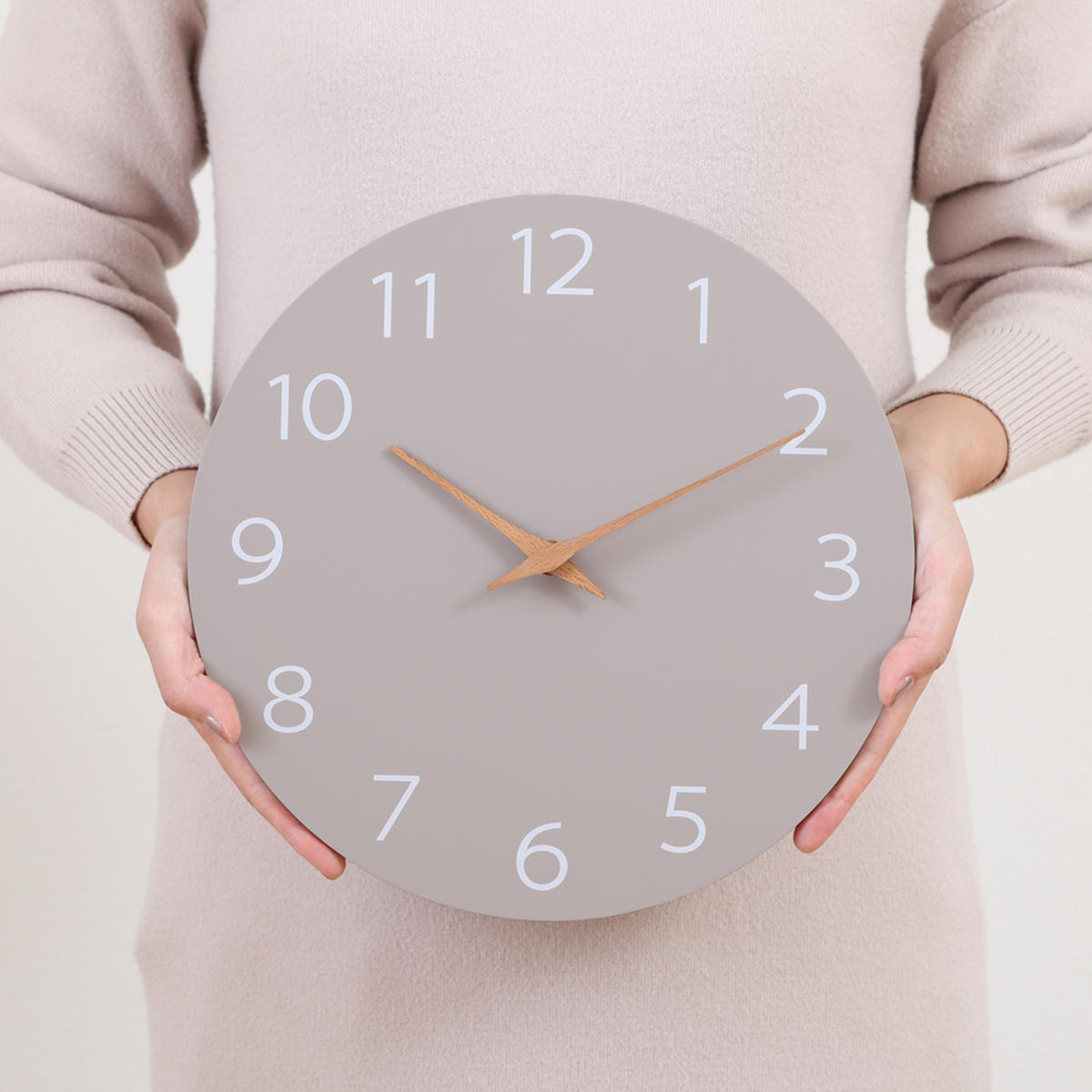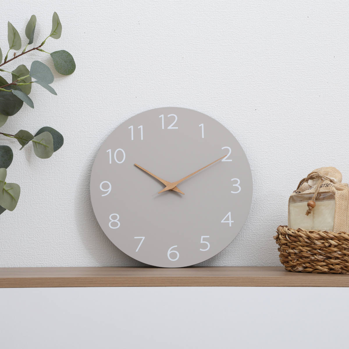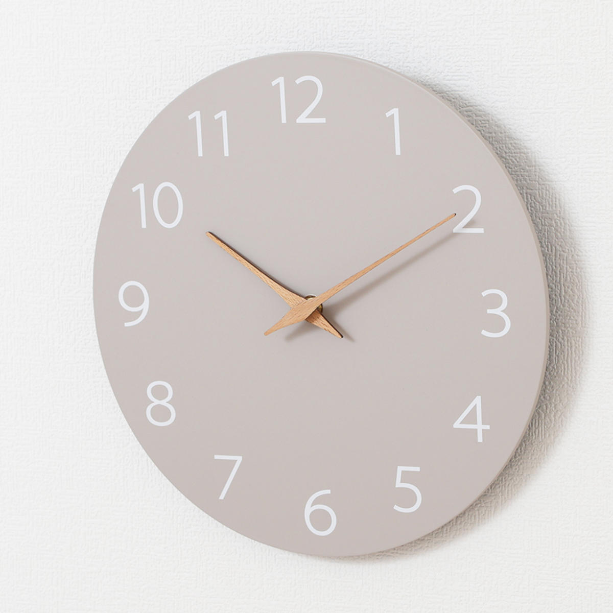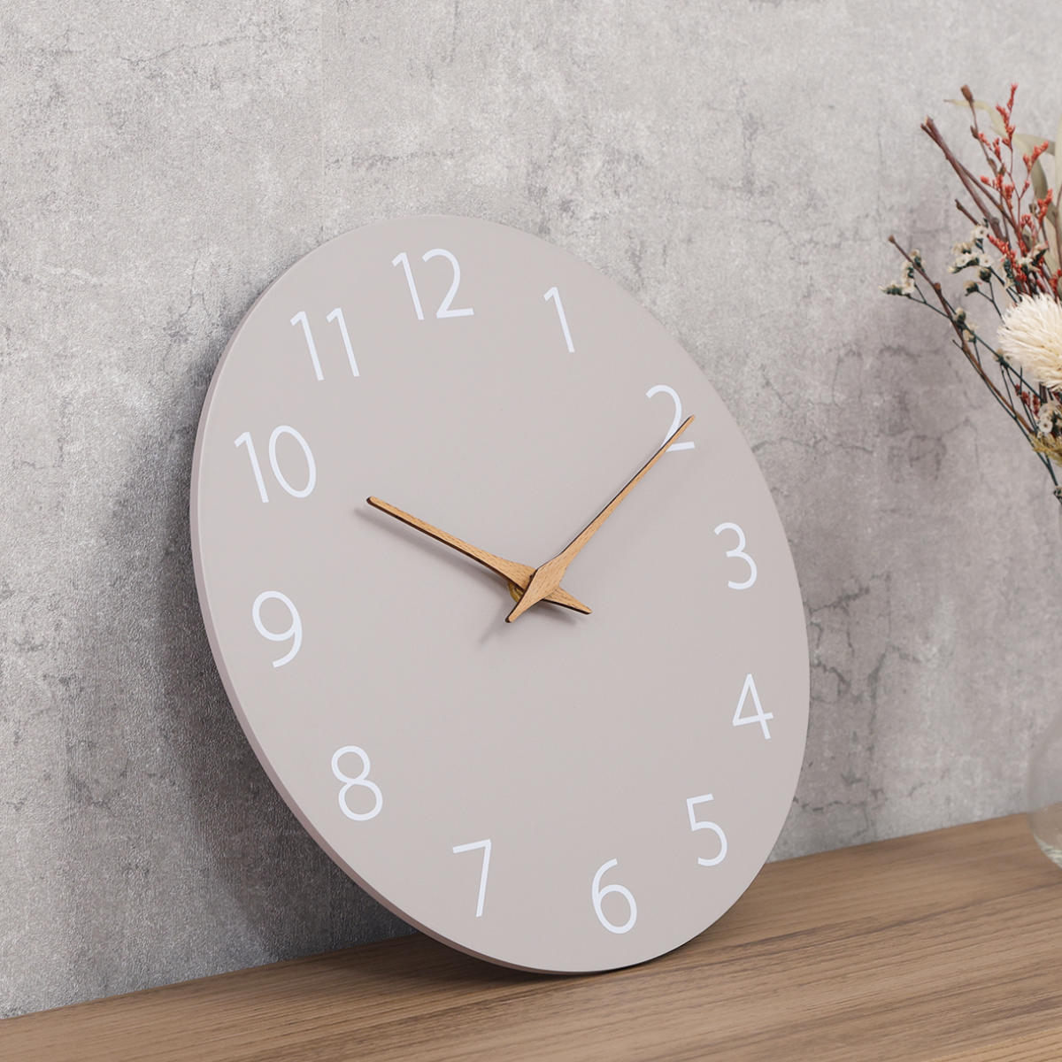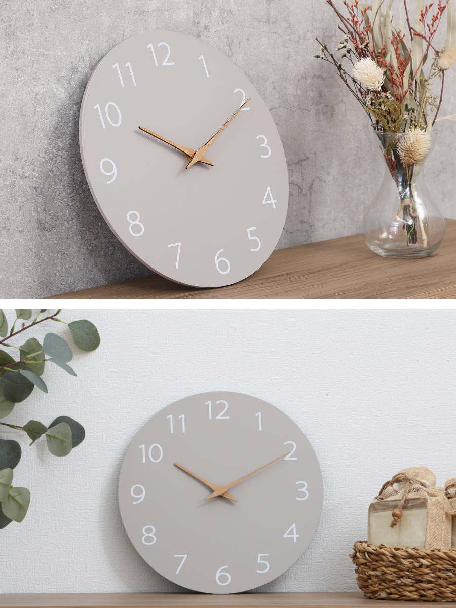 グレーベースに、やさしい木製の針が映えるシンプルなデザイン。自然体でおしゃれなニュアンスカラーが、お部屋の雰囲気をさりげなく引き立てます。