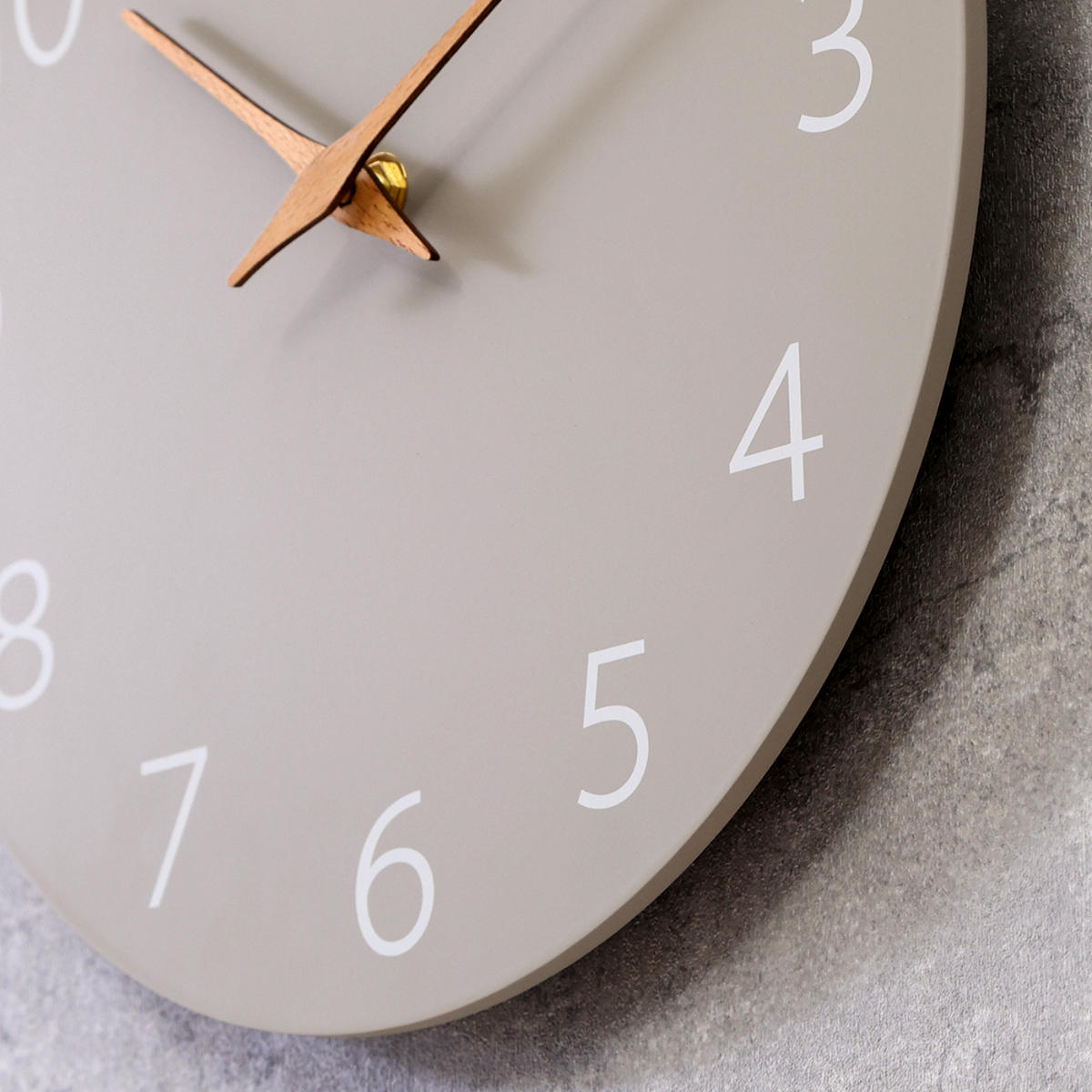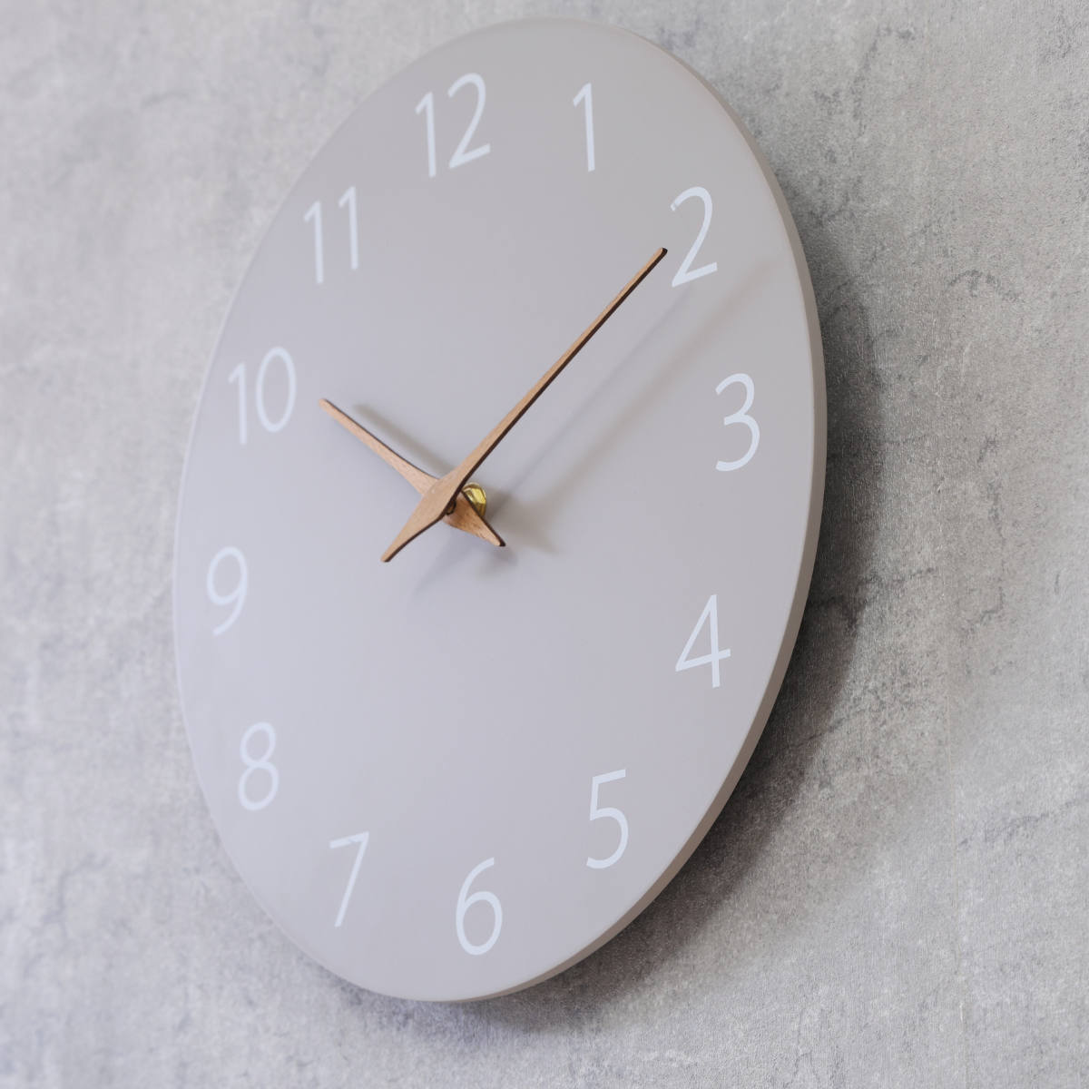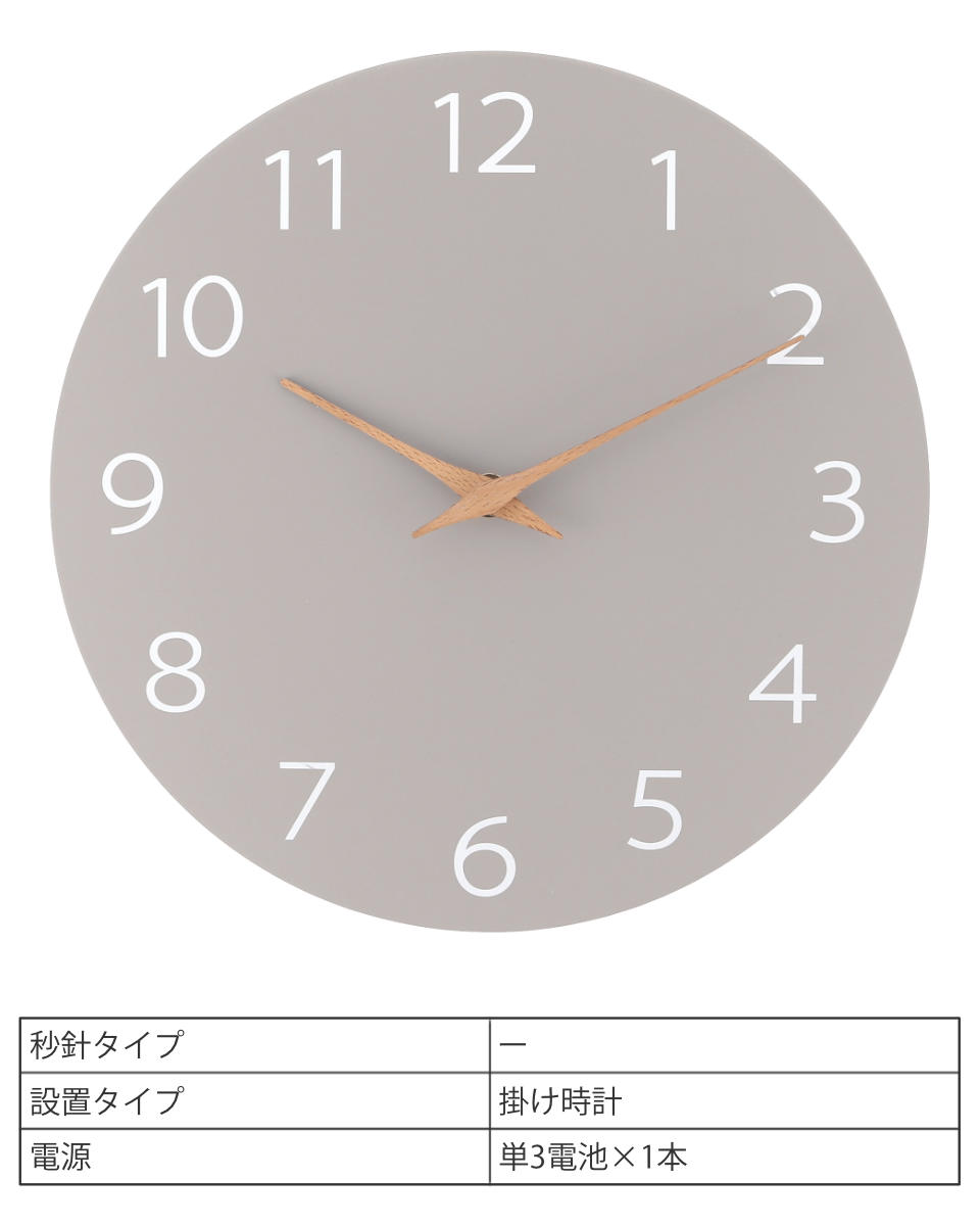 ●マットな質感のグレーベースにやさしい木製の針が映える掛け時計です。