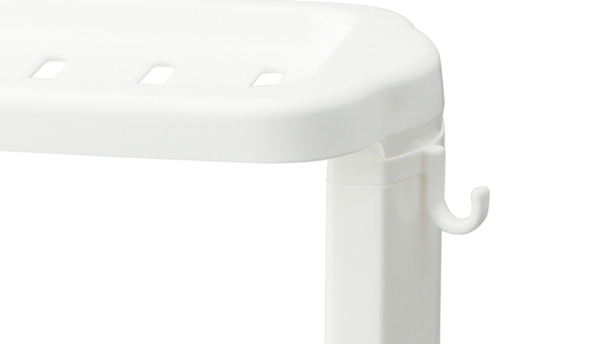 どんな環境でも馴染むようなベーシックなデザインのボトルラックです。光沢感のあるホワイトのカラーが、バスルームの清潔感をアップさせます。