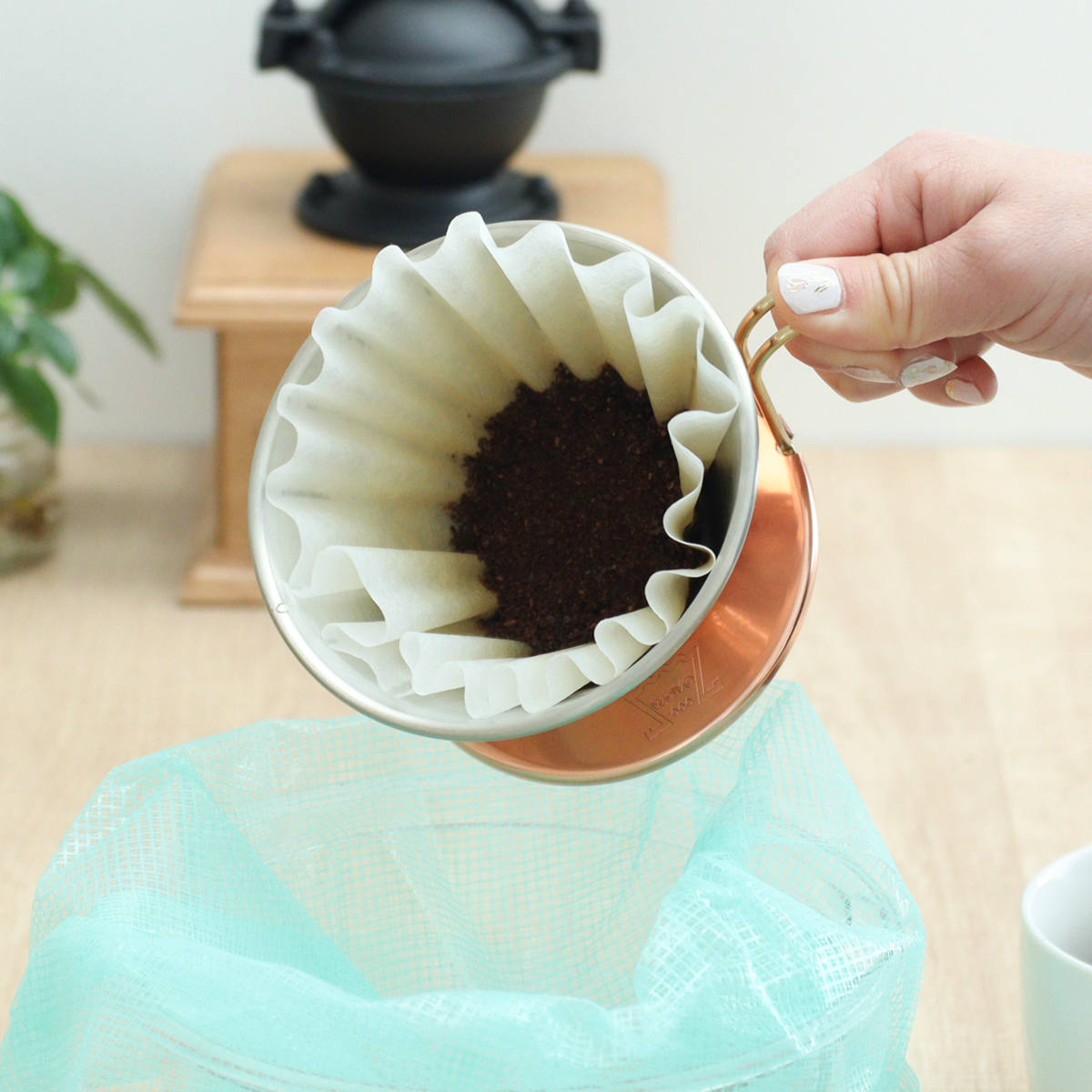 抽出後は、濾紙ごとゴミ箱にポンと入れるだけで後始末が簡単です。