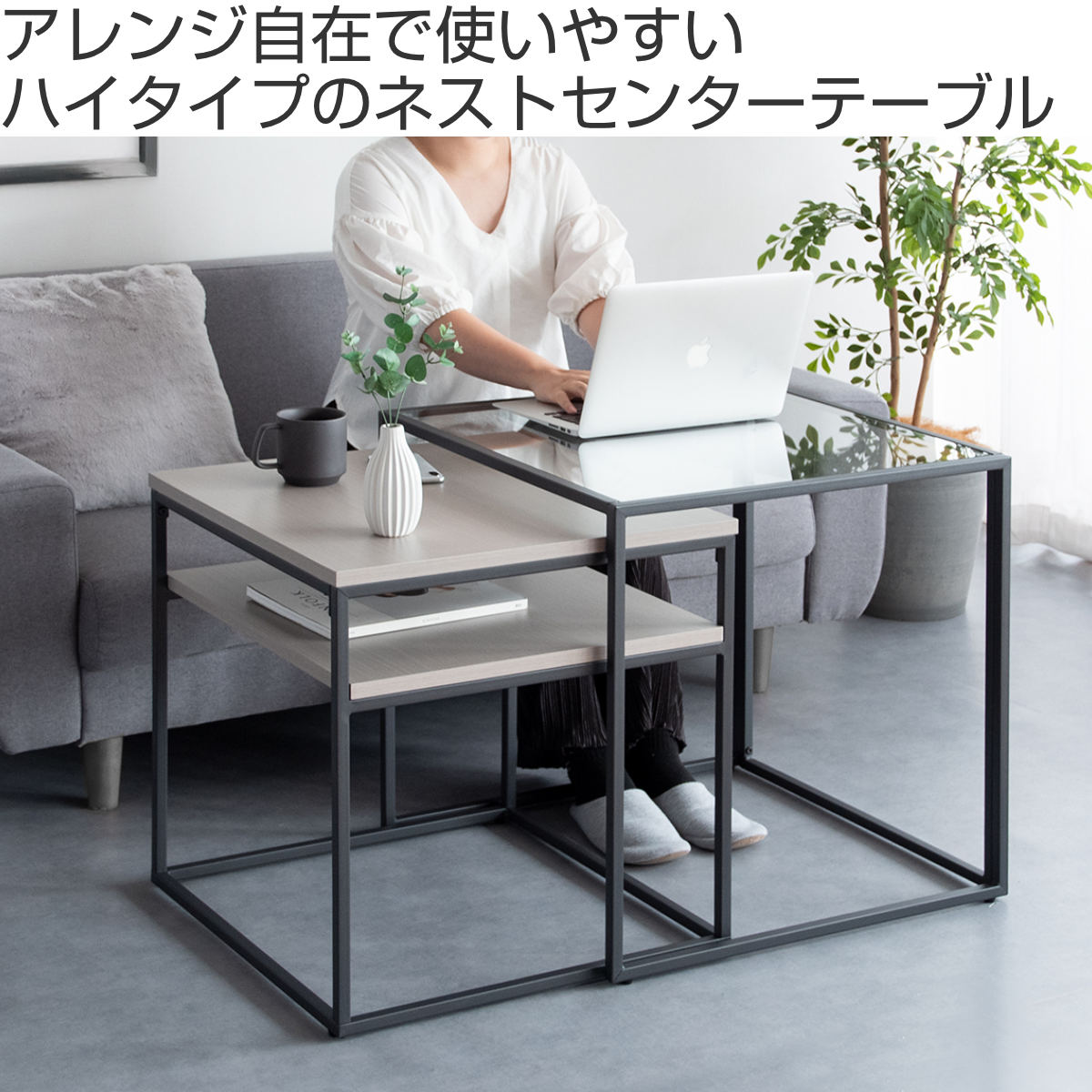 テーブルの高さが60.5cmと56.5cmで、どちらも一般的なセンターテーブルより高い設計になっています。ハイタイプのテーブルは、ソファに座ってのパソコン作業やお食事がしやすく便利です。