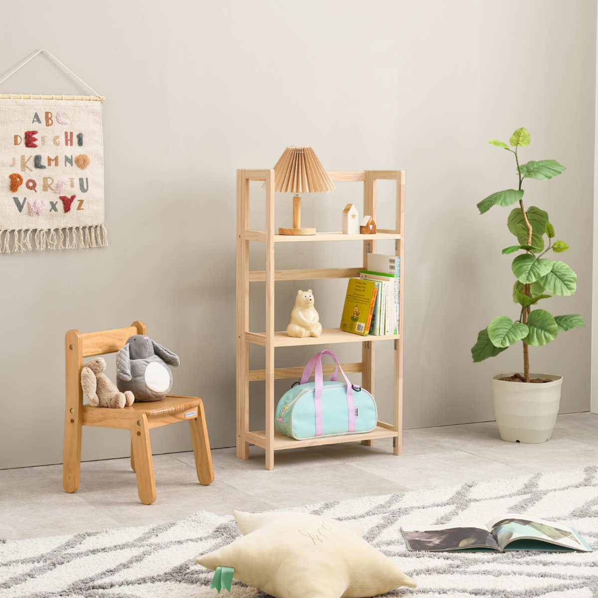 スリムサイズでありながら、しっかりと収納できます。様々なサイズの本を置けるゆとりのある奥行で、背面の落下防止バーで大切な本を守ってくれる優しい仕様。さらに、棚間はA4サイズや雑誌・教科書が収まる高さで出し入れがスムーズ、ストレスフリーです。