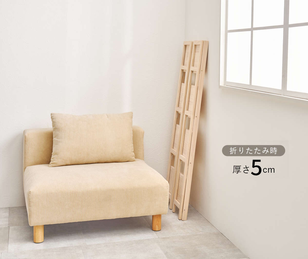 使わない時には、パタっと折りたたんで家具などの隙間に収納しておくことができます。わずか5cmの薄さで、邪魔になりません。