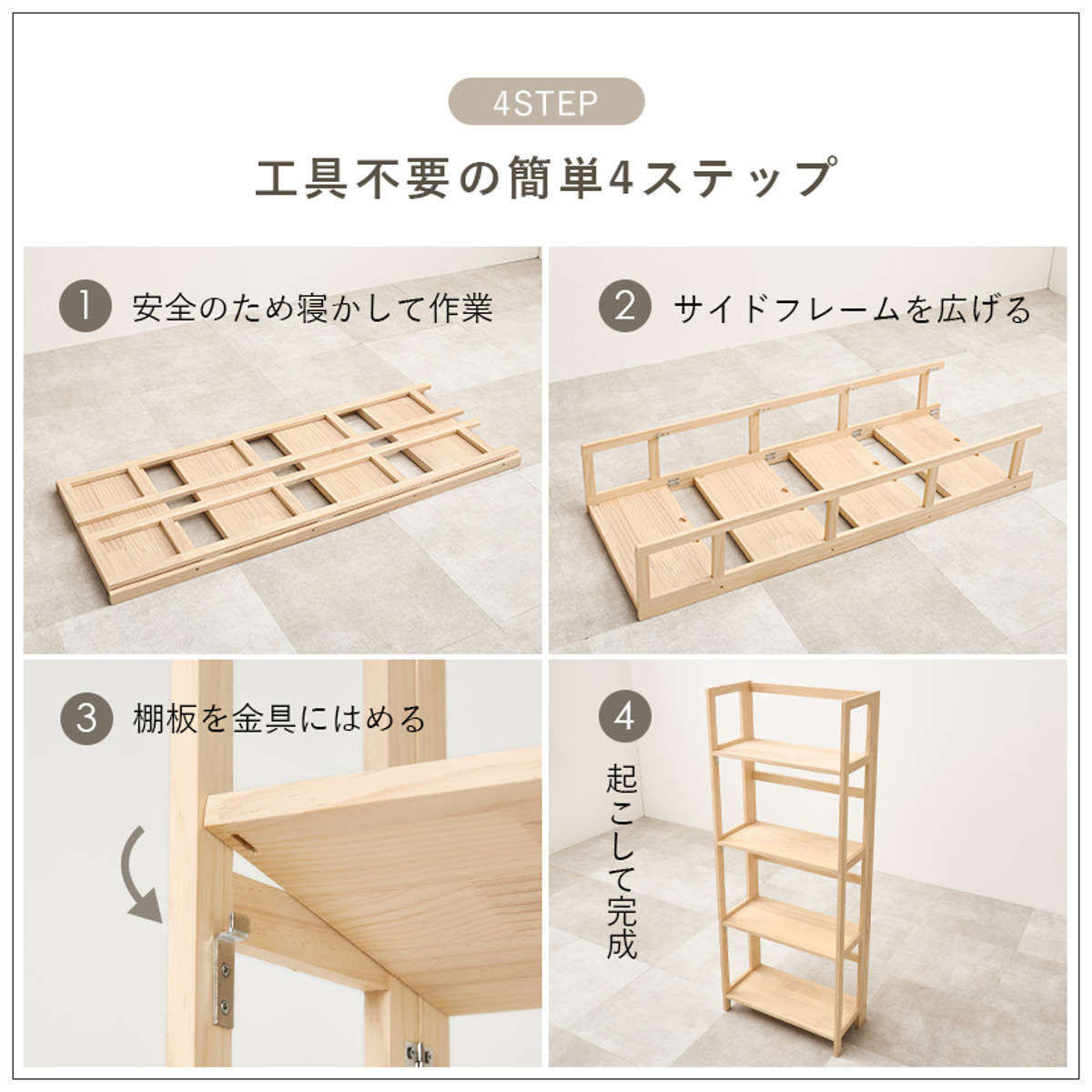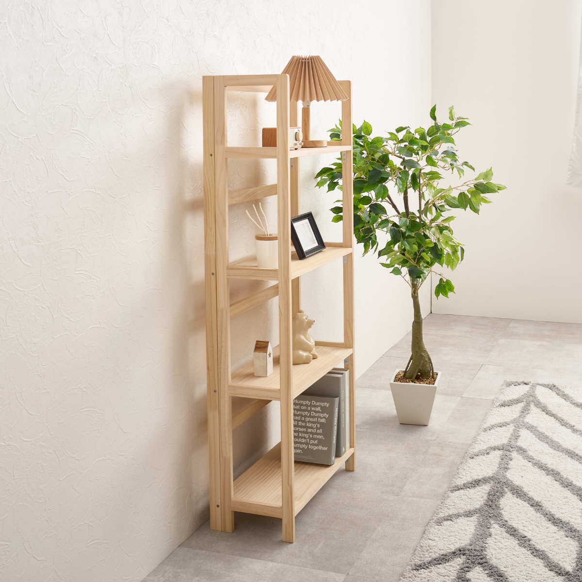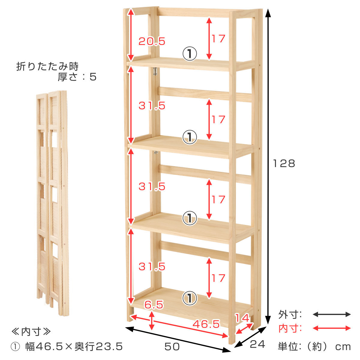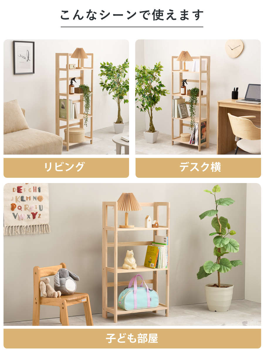 折りたたみラック 4段 幅50cm 完成品 軽量 5kg 天然木 ( 折りたたみ ラック 棚 パイン材 軽い フォールディング A4対応 ディスプレイ 無塗装 収納 すき間 家具 四段 完成品 )