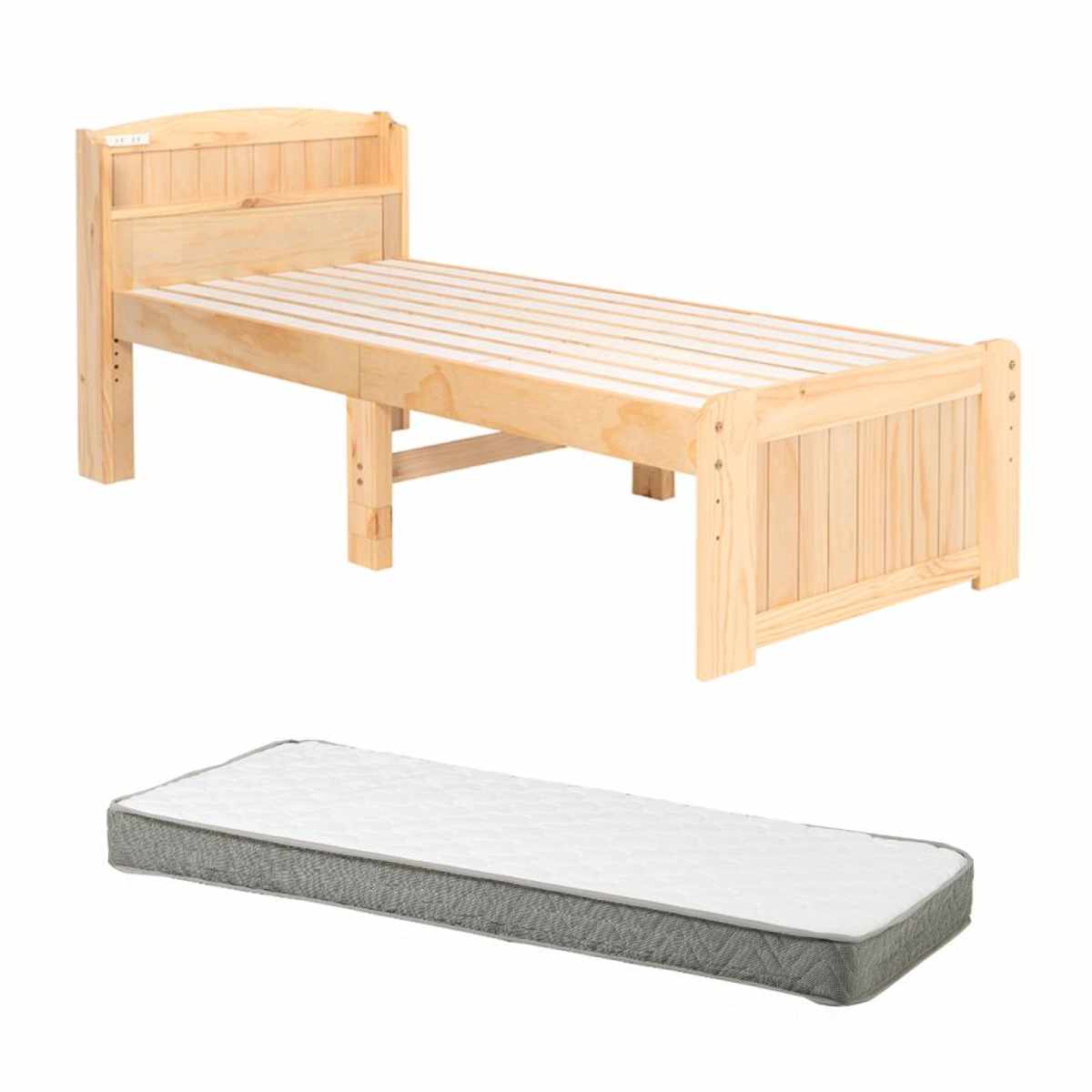 すのこベッド セミシングルショート ボンネルマットレス付 宮棚 2口コンセント付 ( ベッド マットレス付 セミシングル ショート ボンネルコイル 天然木 ベッドフレーム 厚さ14.5cm ライトブラウン ナチュラル ホワイトウォッシュ ) 【ナチュラル】