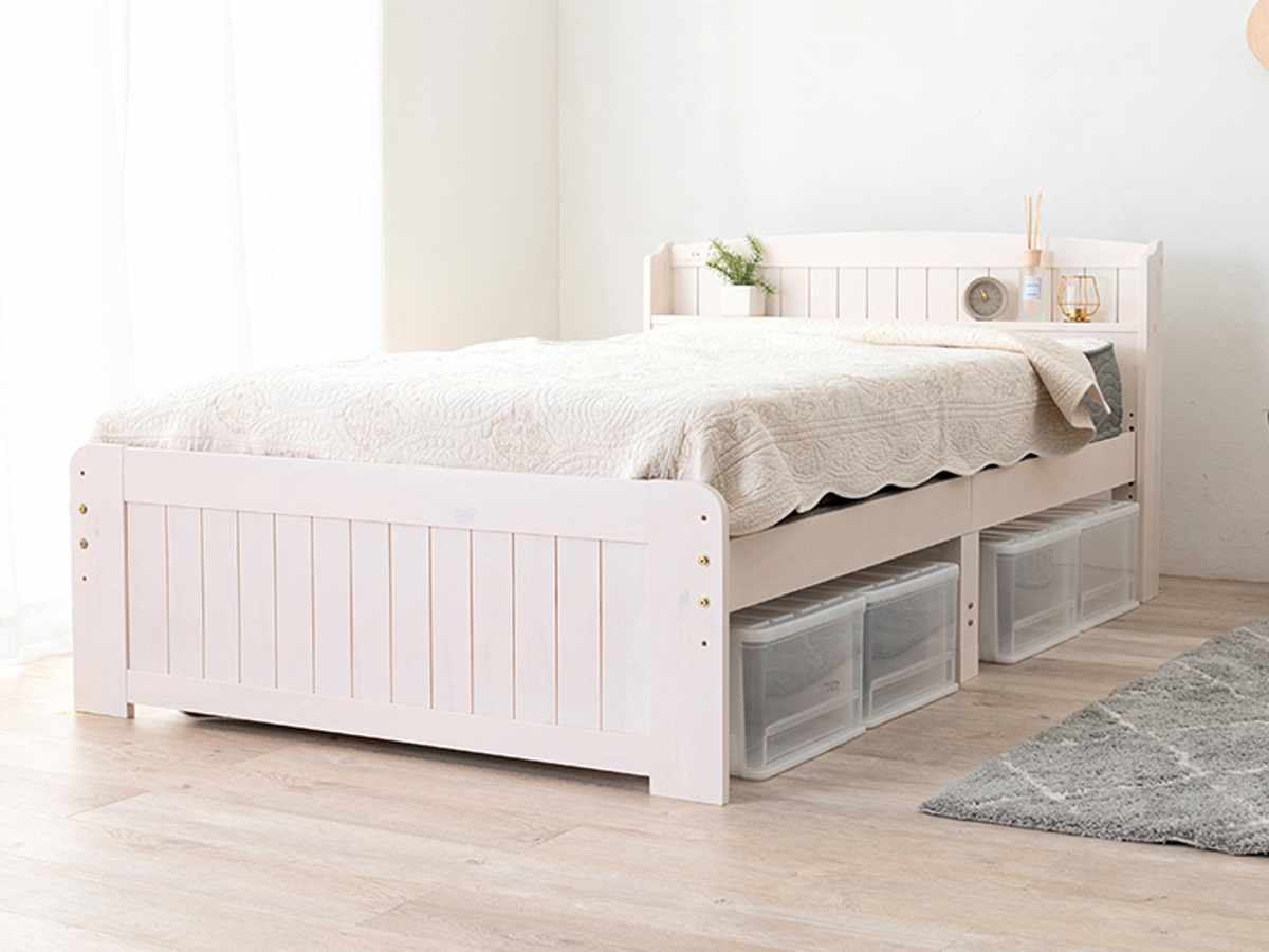 ベッド下は収納スペースとしてお使いいただけます。普段使いにも便利な収納ケースの他、布団や季節用品など、かさばるものや使用頻度の低い物の収納にもぴったりです。