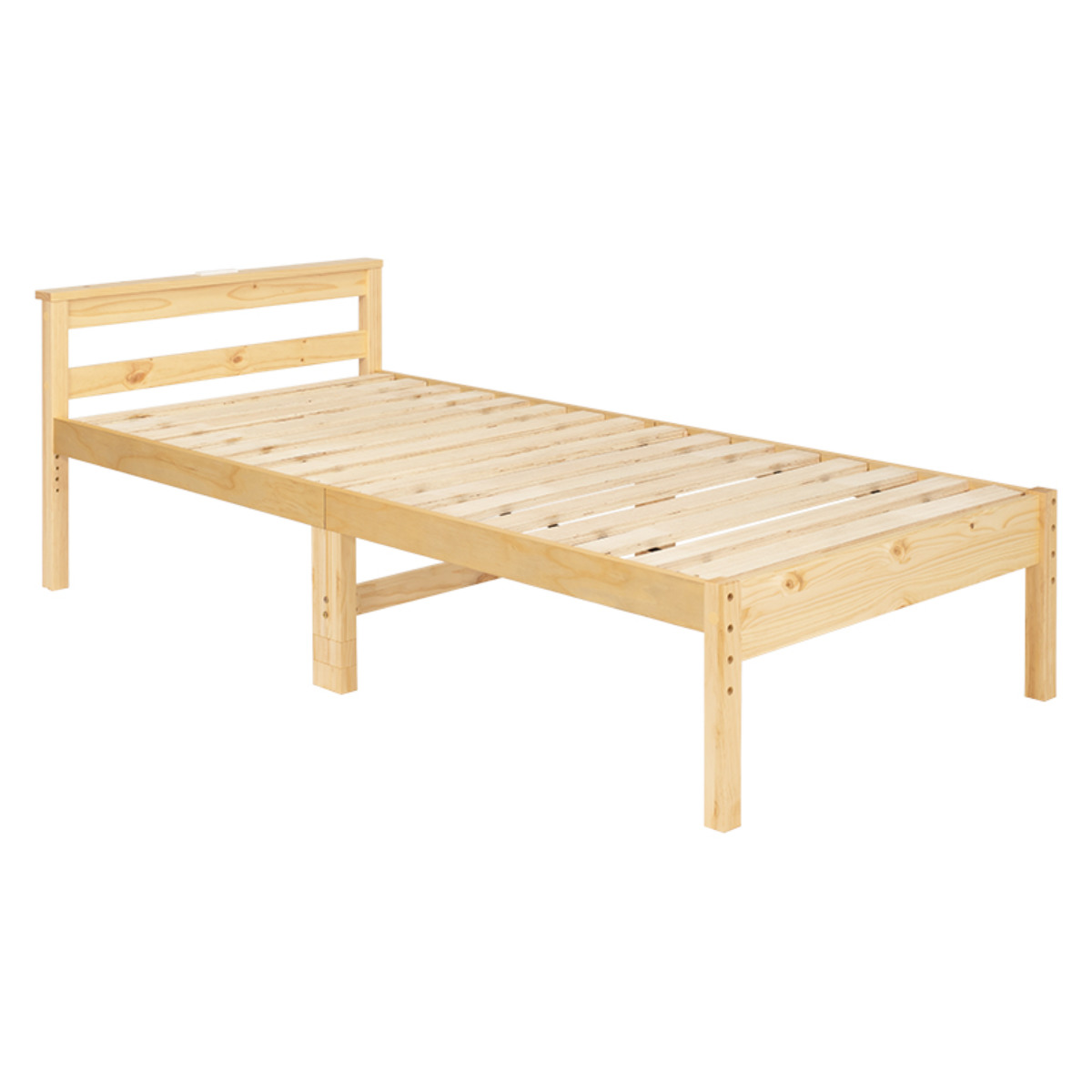 ナチュラルな風合いがお部屋に映えるベッドフレームです。床面は通気性の良いすのこで、汗や湿気を溜め込まず、年中快適におやすみいただけます。天然木の温もりが感じられる柔らかなパイン材を使用しているので、美しい木目と経年による色の変化を楽しめます。