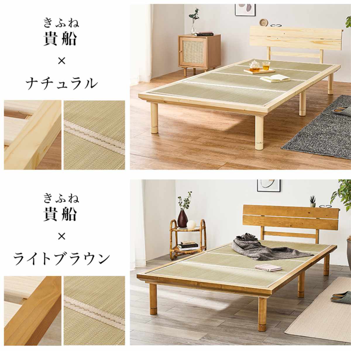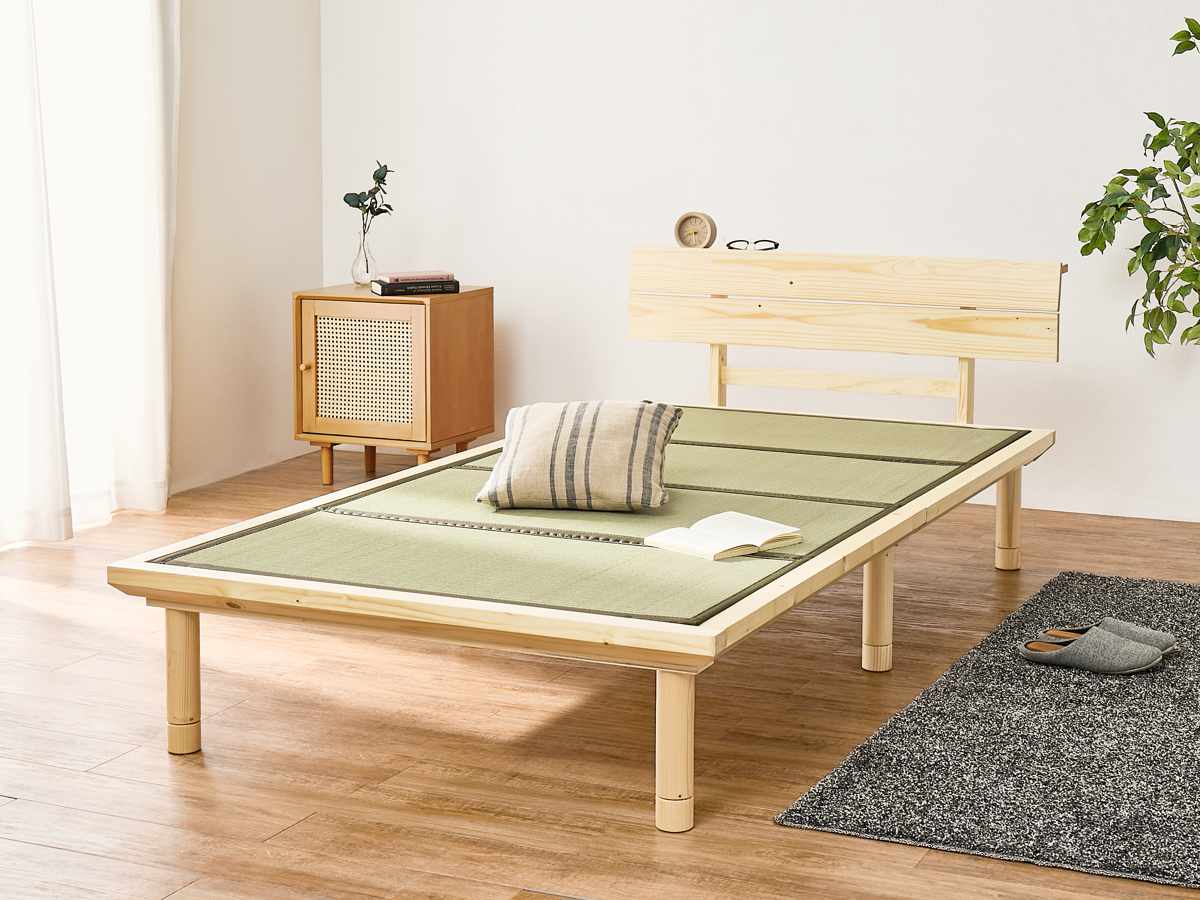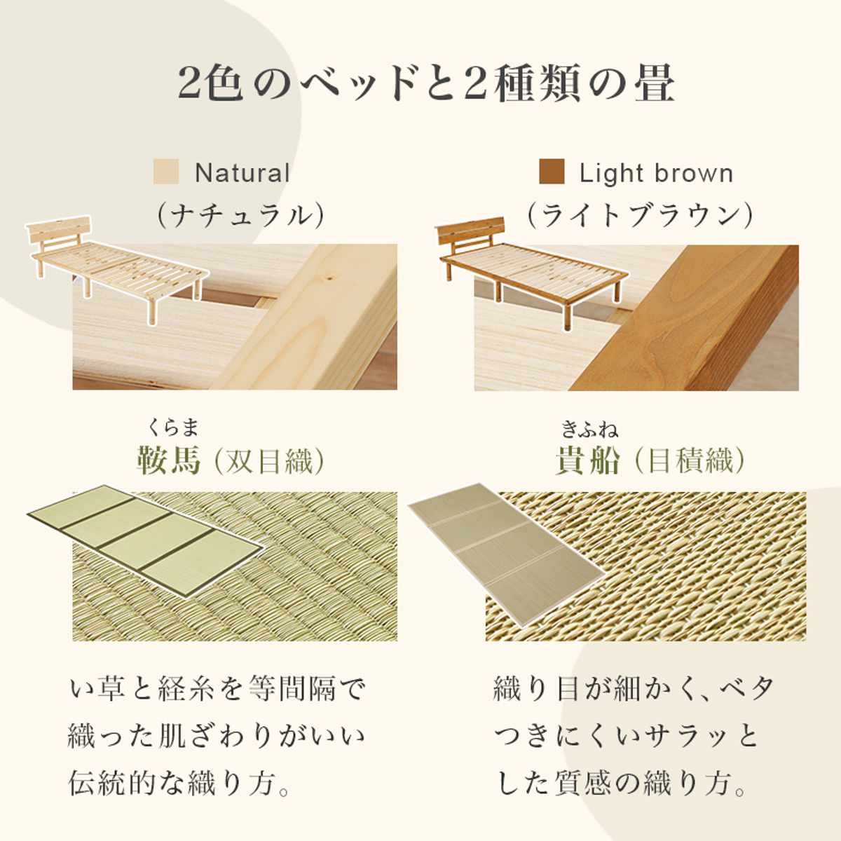 和室・洋室どちらのお部屋にも自然に溶け込むデザインで、2色のベッドフレームと2種類の畳からお選びいただけます。