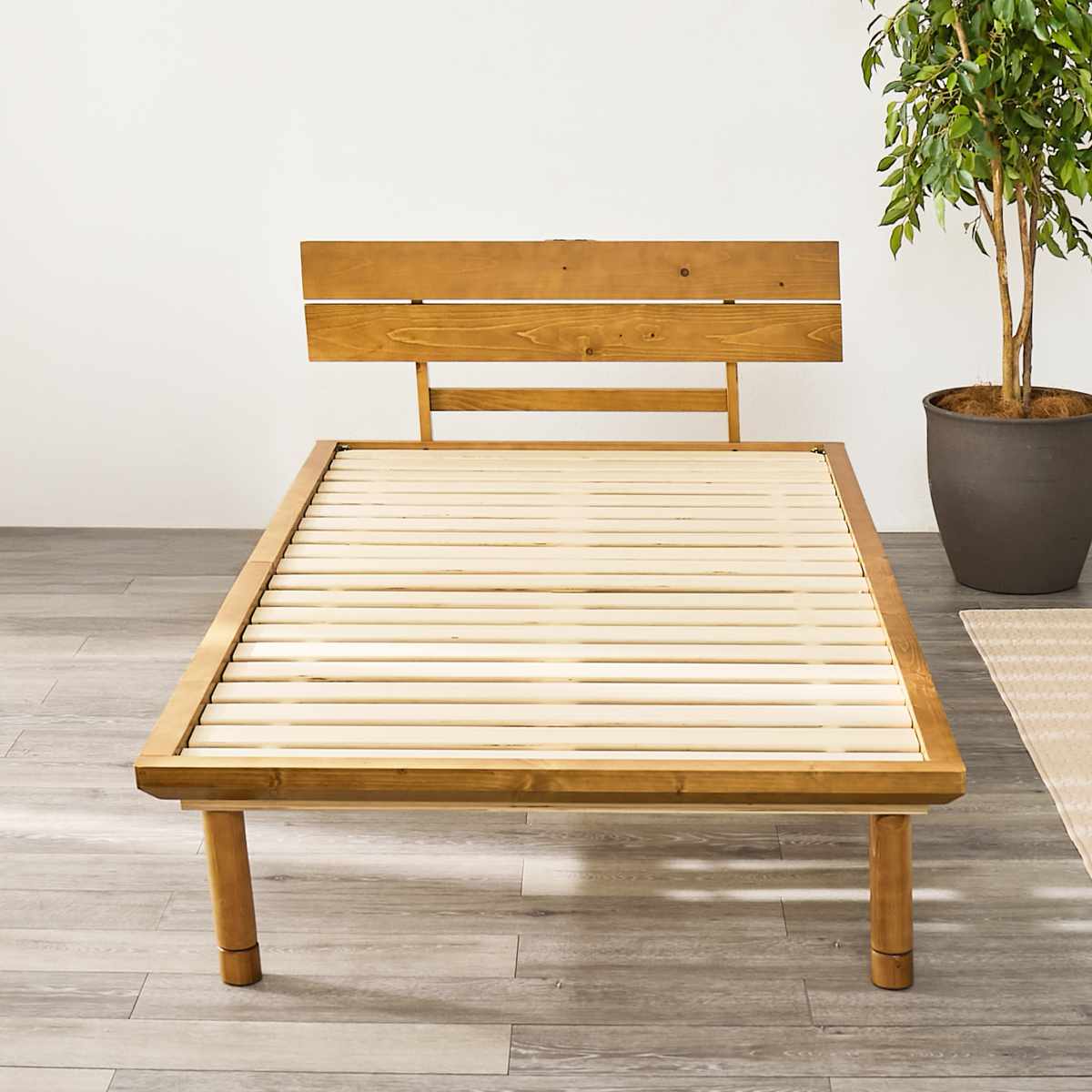 ベッドフレームには天然木の温もりが感じられる柔らかなパイン材を使用。美しい木目と経年による色の変化を楽しめます。
