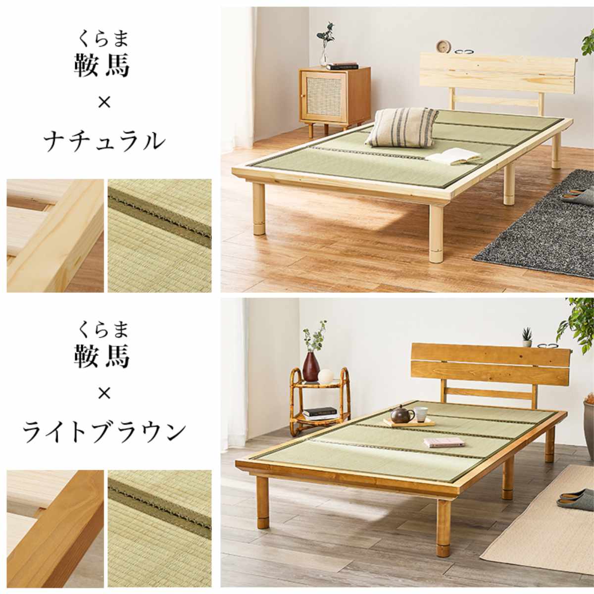 畳ベッド シングル 天然い草 宮棚 2口コンセント付 耐荷重300kg ( ベッド 畳 棚付 たたみ い草 コンセント付 和モダン ライトブラウン ナチュラル 貴船 鞍馬 天然木 木製 マット ) 【ナチュラル×貴船】