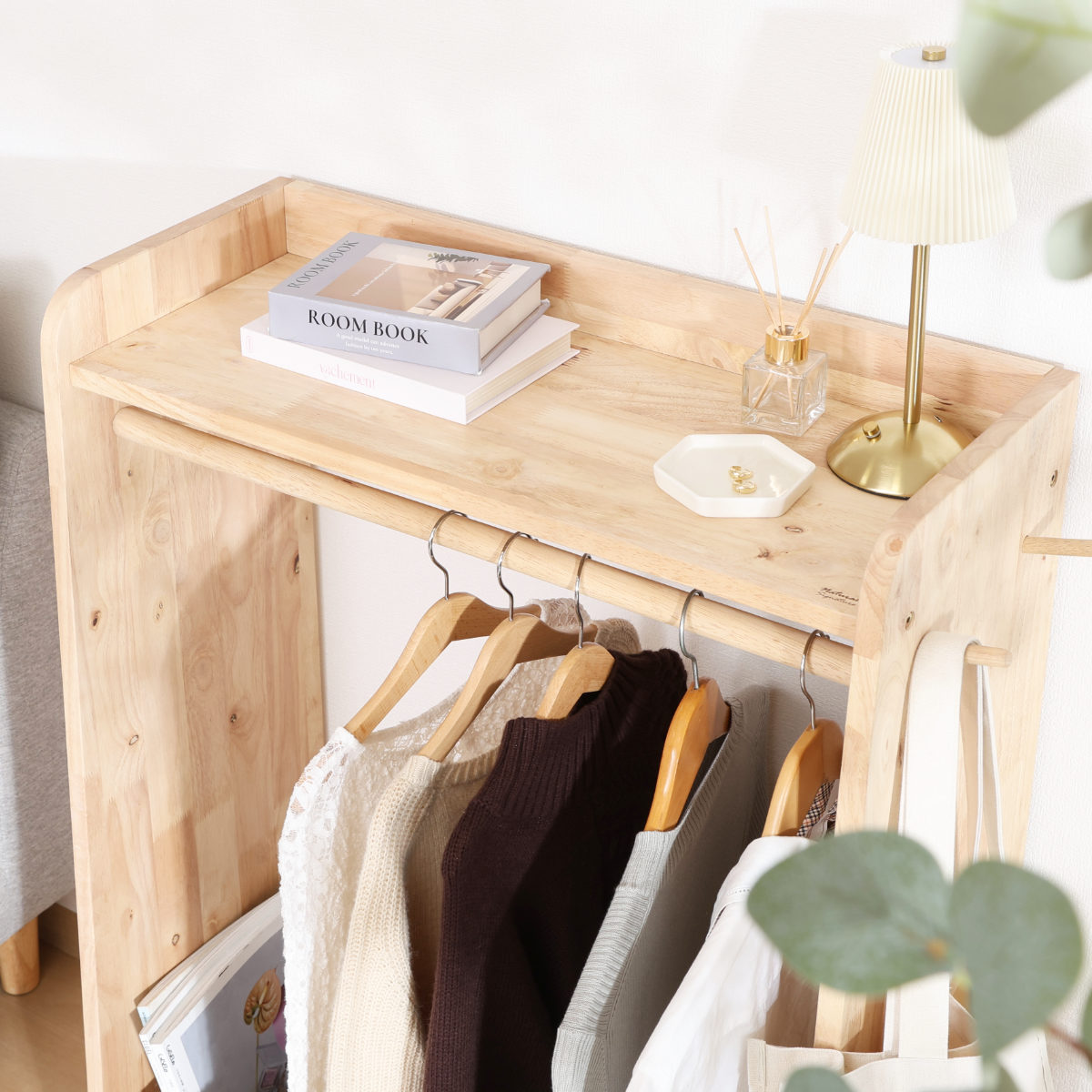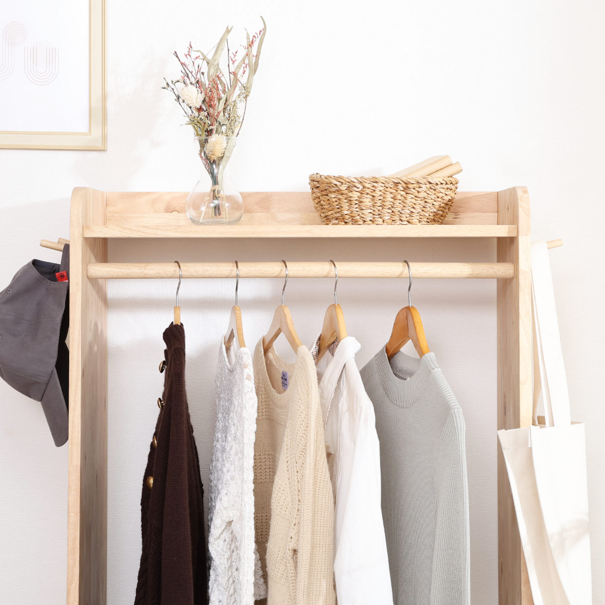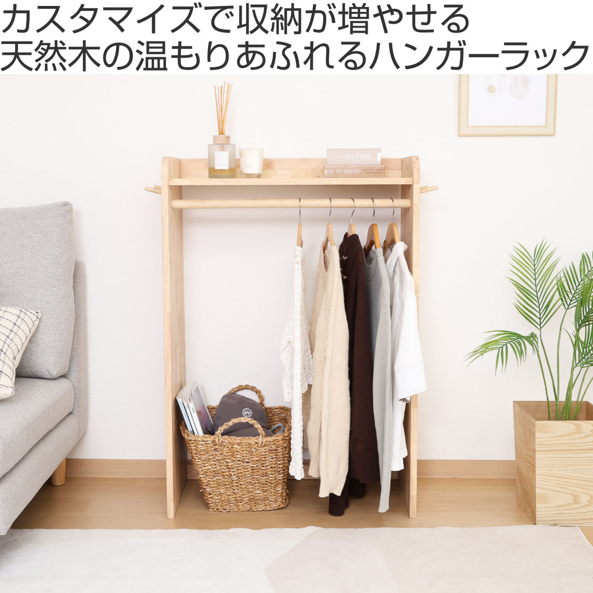 木の温もり溢れるデザインのハンガーラック 幅70cm