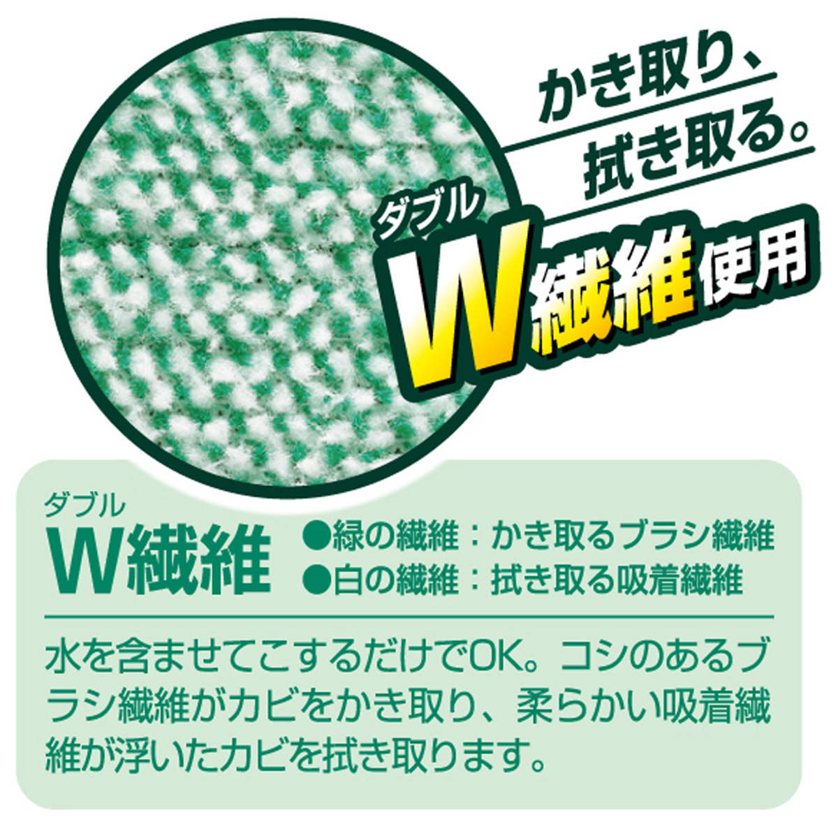 ●水を含ませこするだけで、W繊維が浴室のカビを落とします。