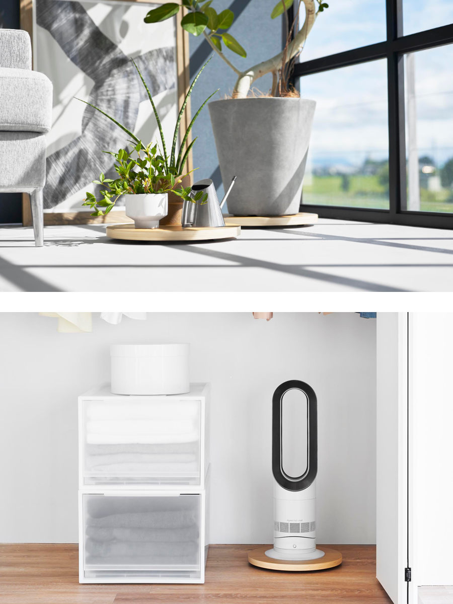 重い鉢植えもスムーズに移動できるので、掃除の際もラクラク。置き場所を簡単に変えることができるので、植物の日当たりの調節もしやすいです。