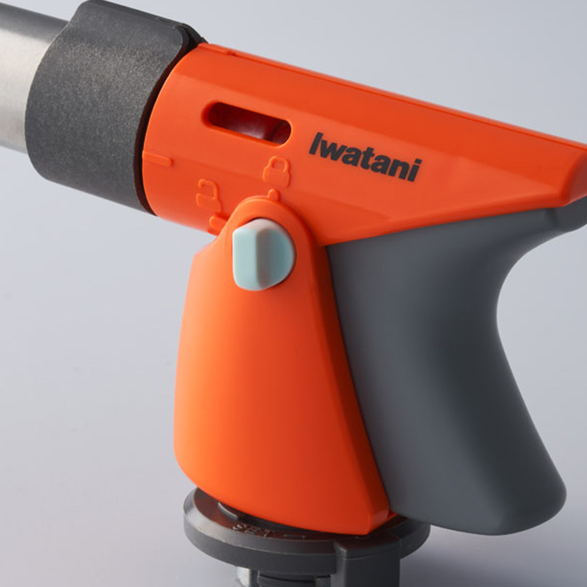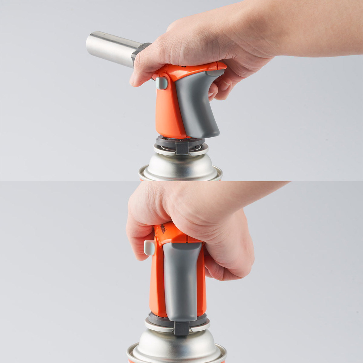 点火レバーを握ると点火、離すと消火する構造です。また、使用しない時は点火レバーを固定するロックつまみも搭載されているので安心です。