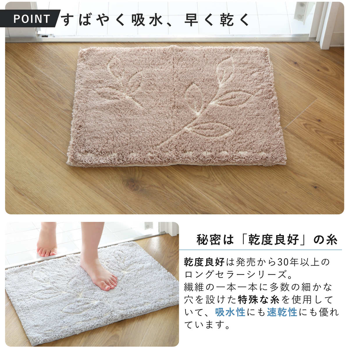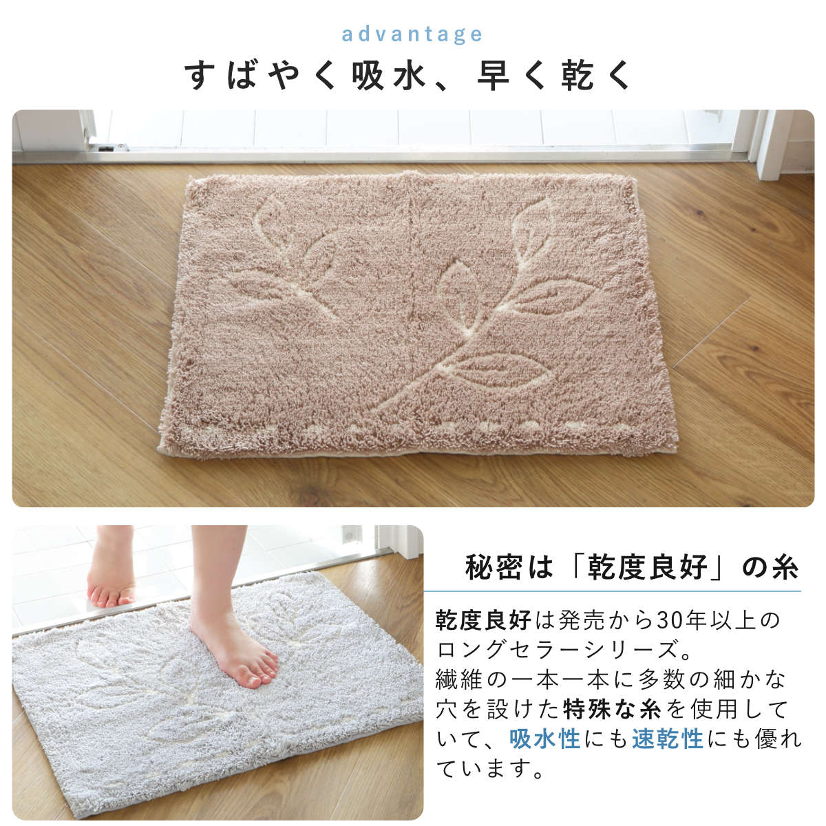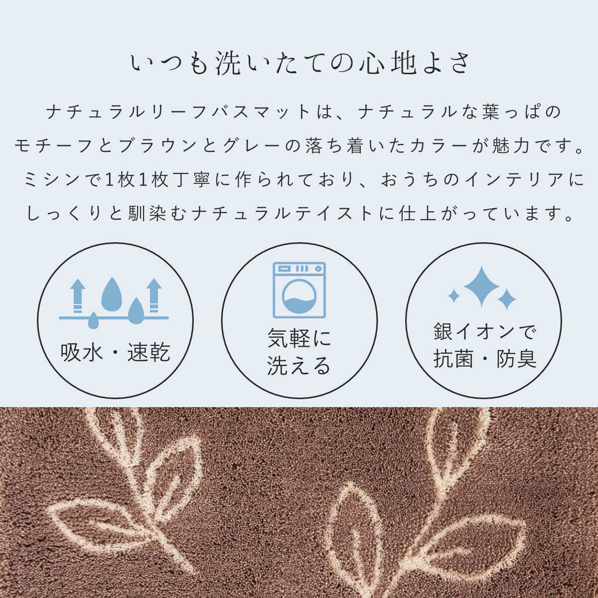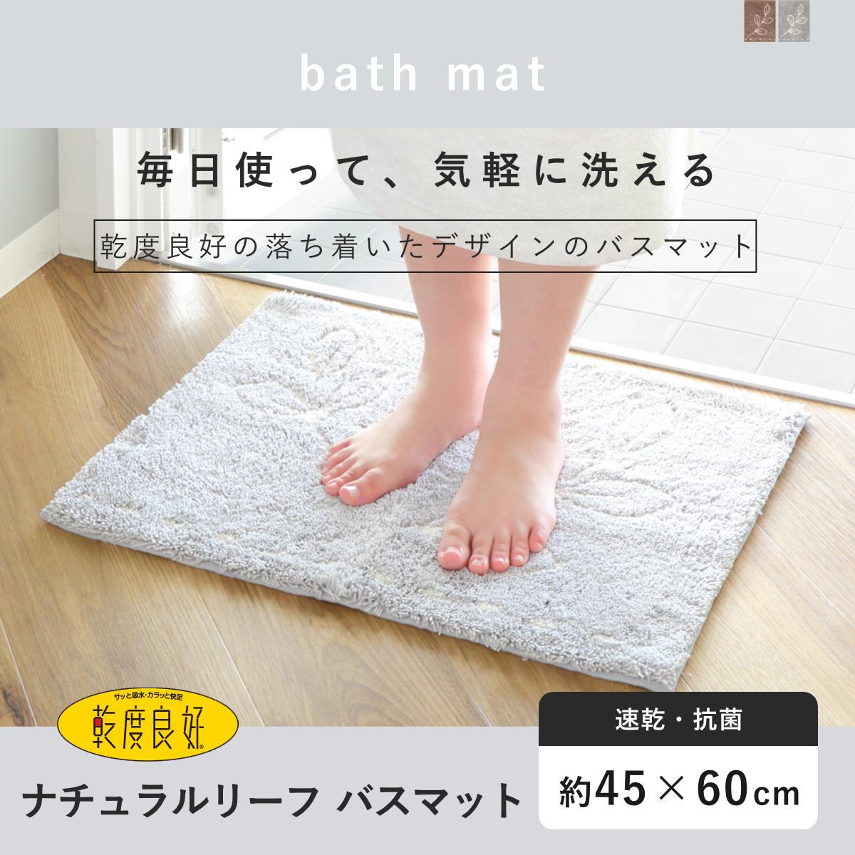 乾度良好ナチュラルリーフ 約45×60cm ( 風呂 マット 速乾 速乾性 吸水 吸水性 抗菌 防臭 滑り止め お風呂 浴室 長方形 吸水速乾 バス バス用品 お風呂用品 バスグッズ 洗える 丸洗い 足ふき 60cm ) 【ブラウン】