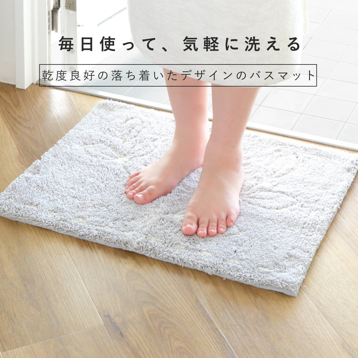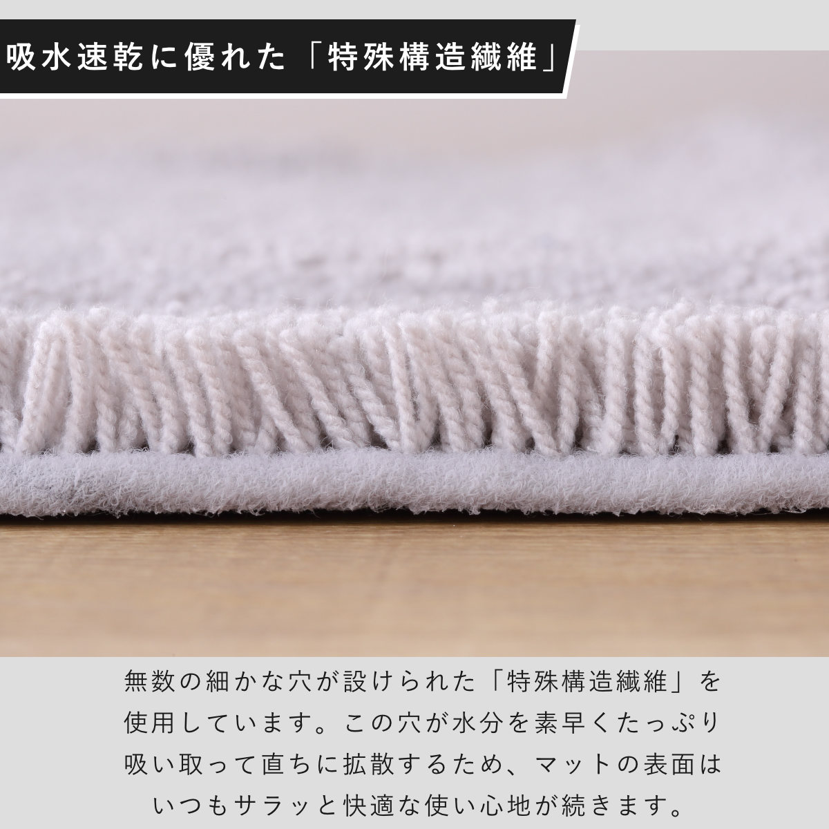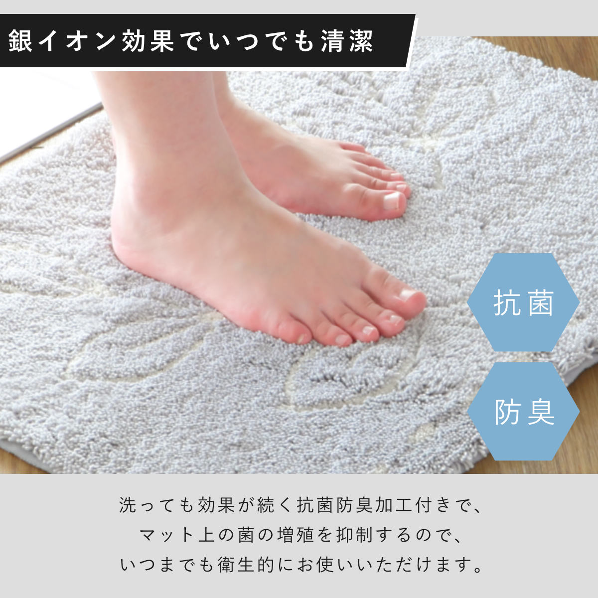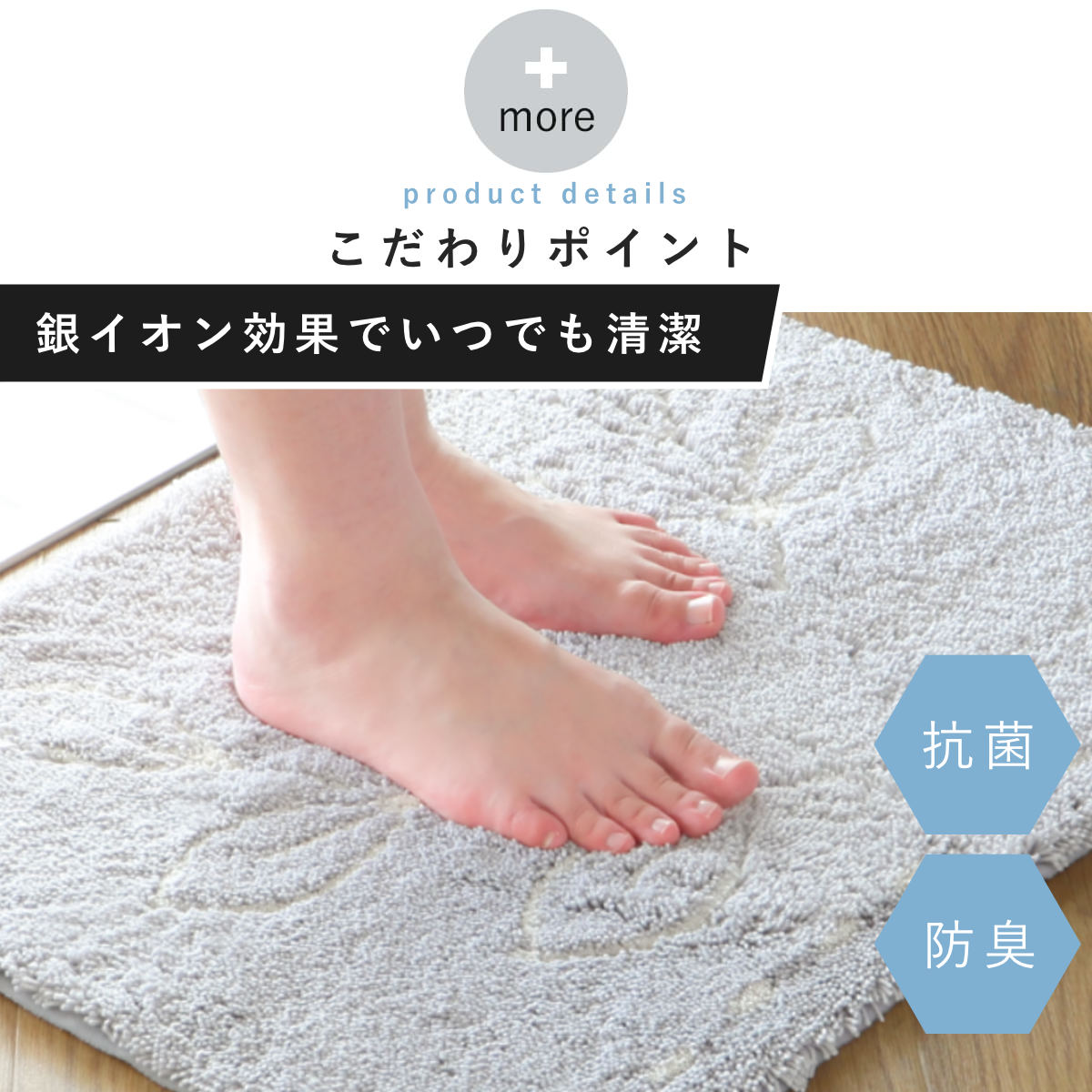 洗っても効果が続く抗菌防臭加工付きで、マット上の菌の増殖を抑制するので、いつまでも衛生的にお使いいただけます。