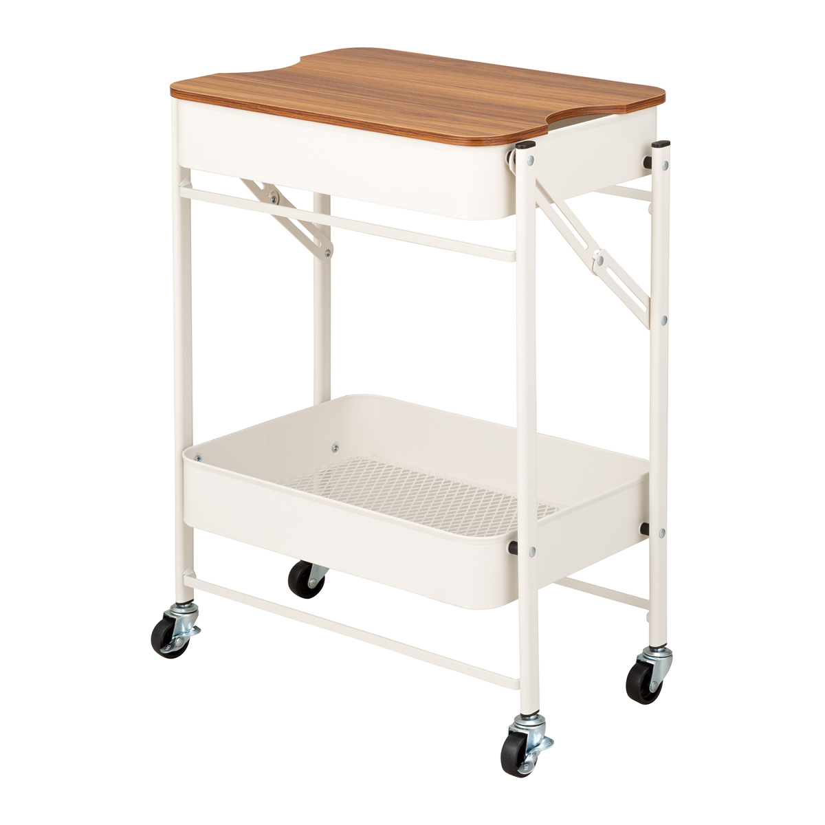 ●ほぼ組み立ていらずな折りたたみ2段ワゴンです。