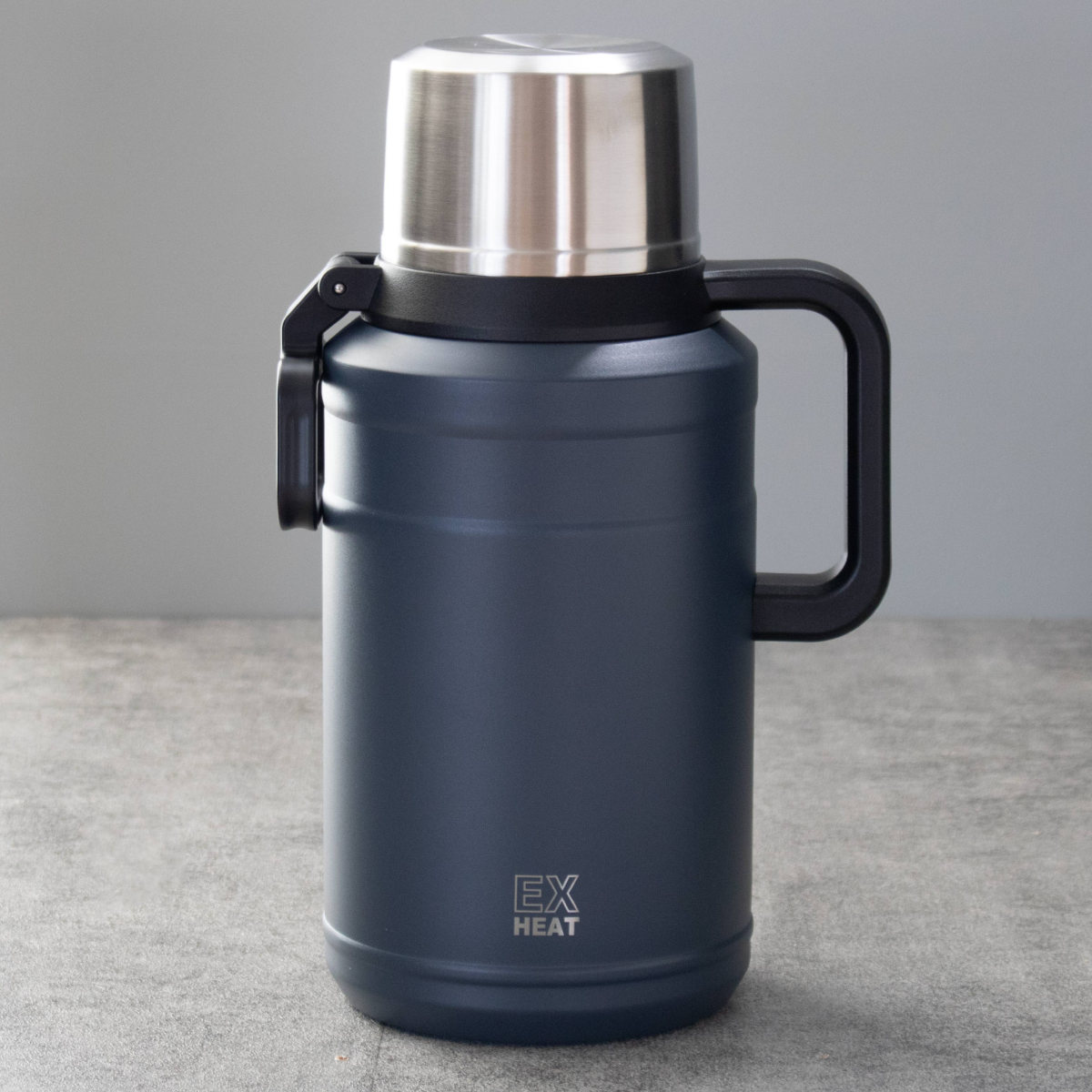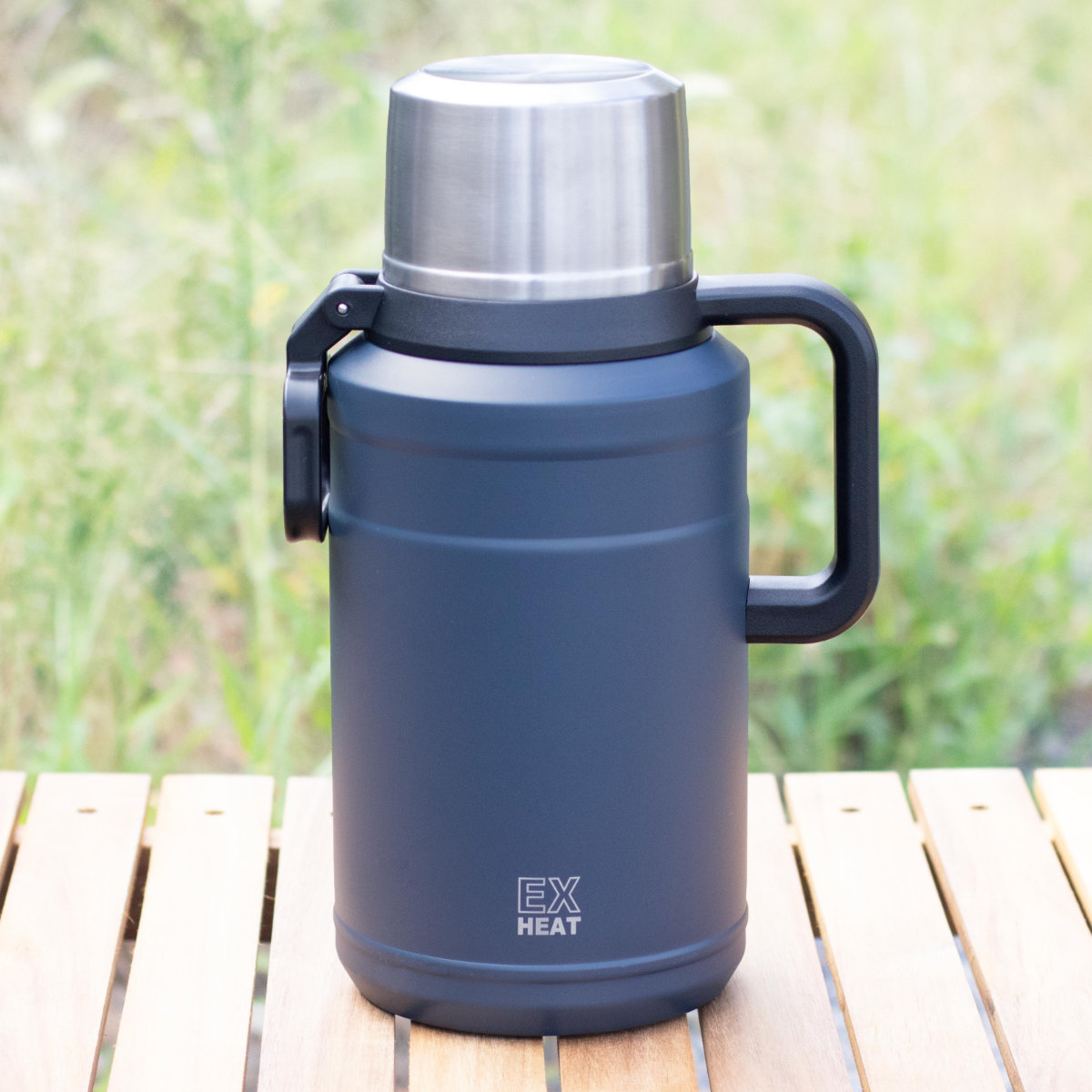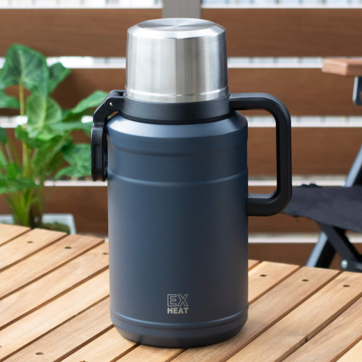 水筒 3L エクスヒート メガボトル3000 ステンレス 保温保冷 ( 保温 保冷 コップ飲み ステンレスボトル コップ メガボトル 大容量 ワンタッチ マグ ボトル 真空二重構造 おしゃれ アウトドア ハンドル ベルト付き )