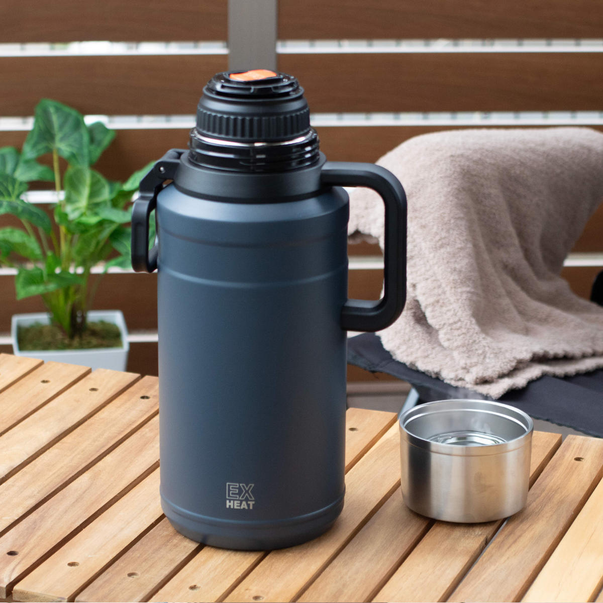 水筒 3.5L エクスヒート メガボトル3500 ステンレス 保温保冷 ( 保温 保冷 コップ飲み ステンレスボトル コップ メガボトル 大容量 ワンタッチ マグ ボトル 真空二重構造 おしゃれ アウトドア ハンドル ベルト付き )