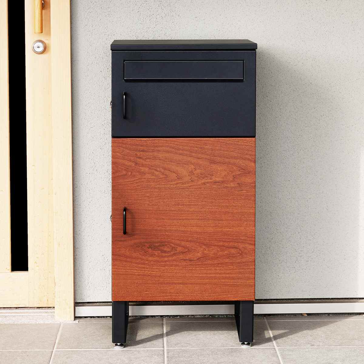 宅配ボックス 郵便ポスト コンパクト 2段 ( ポスト 宅配 ボックス 宅配ポスト 一戸建て用 スタンドポスト ポスト一体型 小型 据え置き 置き配用ボックス 郵便 郵便受け 宅配BOX 2段式 防錆加工 鍵付き 戸建 屋外 おしゃれ ) 【ブラックブラウン】