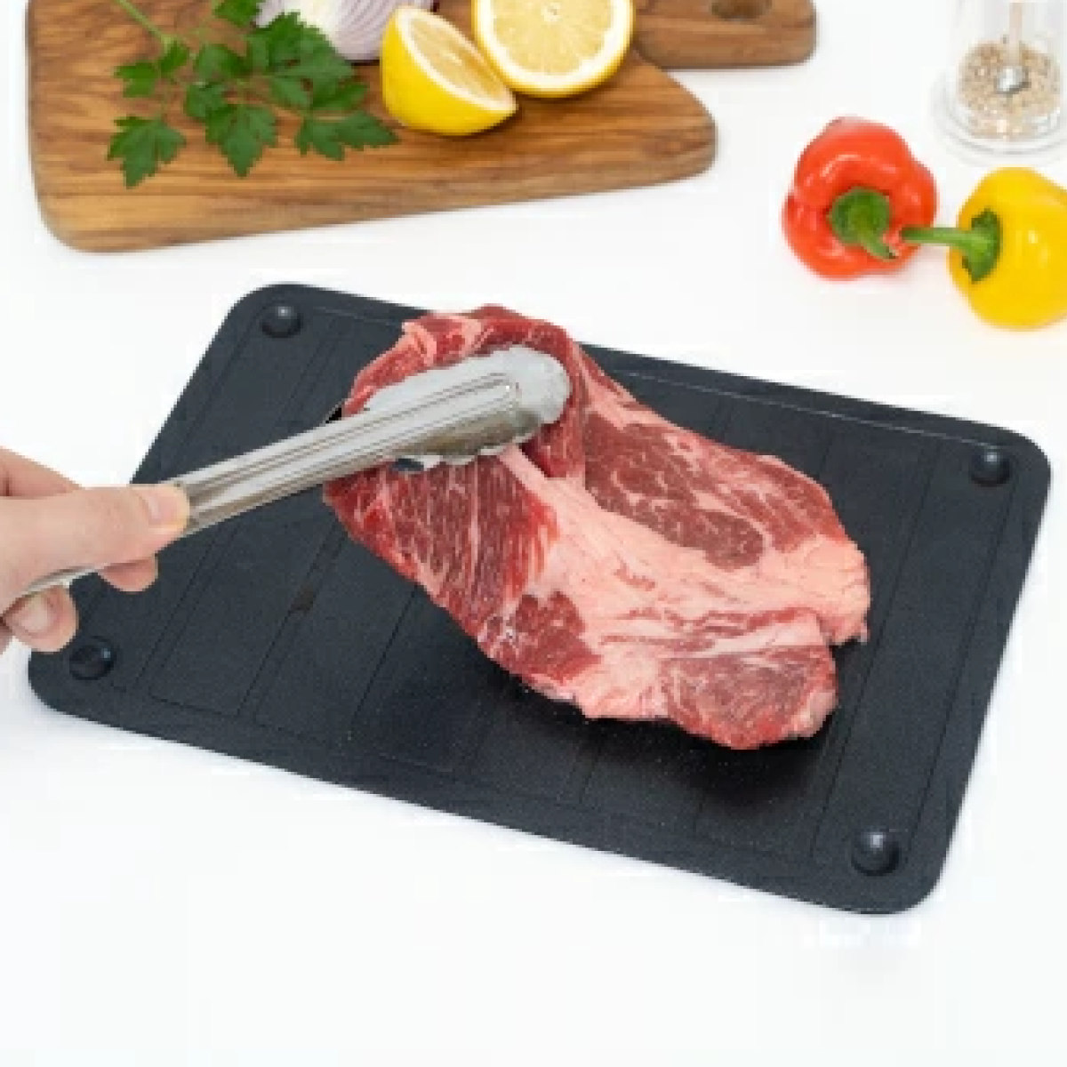 冷凍されたお肉やお魚を、時短で解凍できるプレートです。熱伝導率に優れたアルミ素材のプレートが解凍スピードを速め、お料理の効率をアップさせてくれます。電子レンジを使わず、解凍ムラ解消&経済的なのも嬉しいポイント。