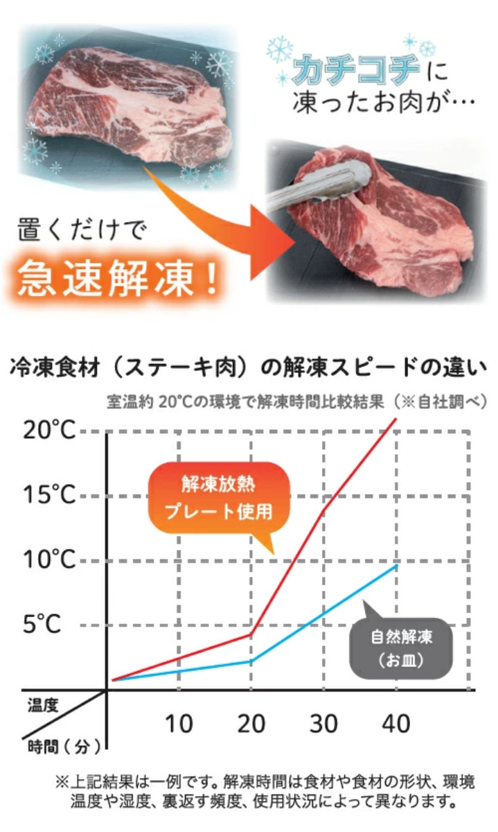 ●冷凍されたお肉やお魚を、時短で解凍できるプレートです。