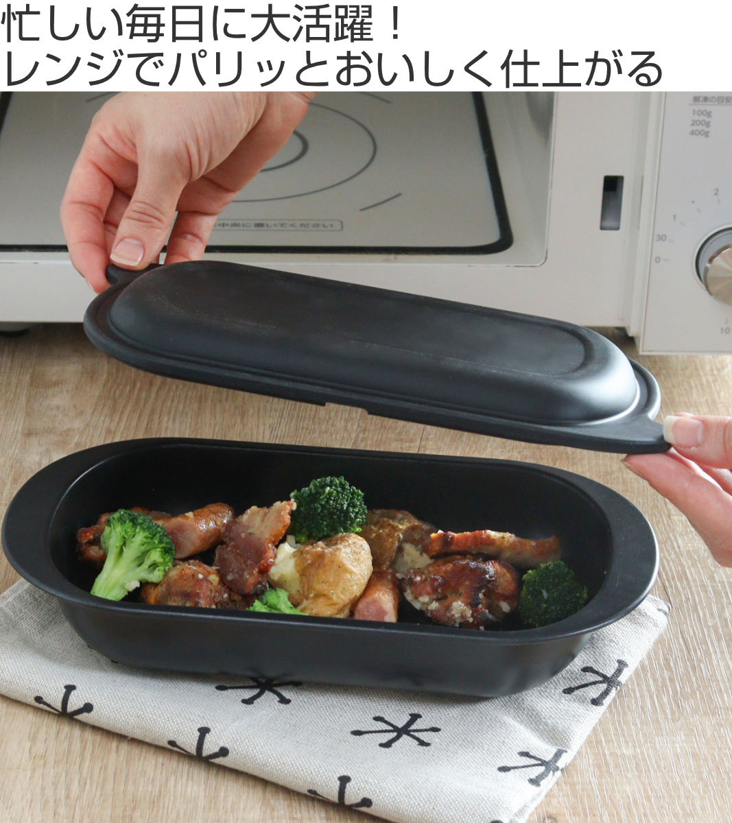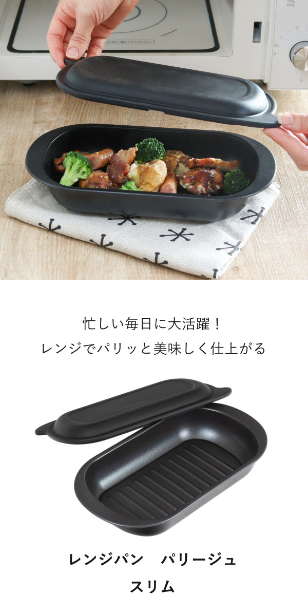 レンジパン スリムパリージュ 電子レンジ調理器 ( 電子レンジ 調理器 魚焼き器 焼き魚 焼き芋 電子レンジ専用調理器 電子レンジ魚焼き器 横長 調理 魚 肉 焼く 蒸す 煮る 温め直し 食洗機対応 レシピ付き )