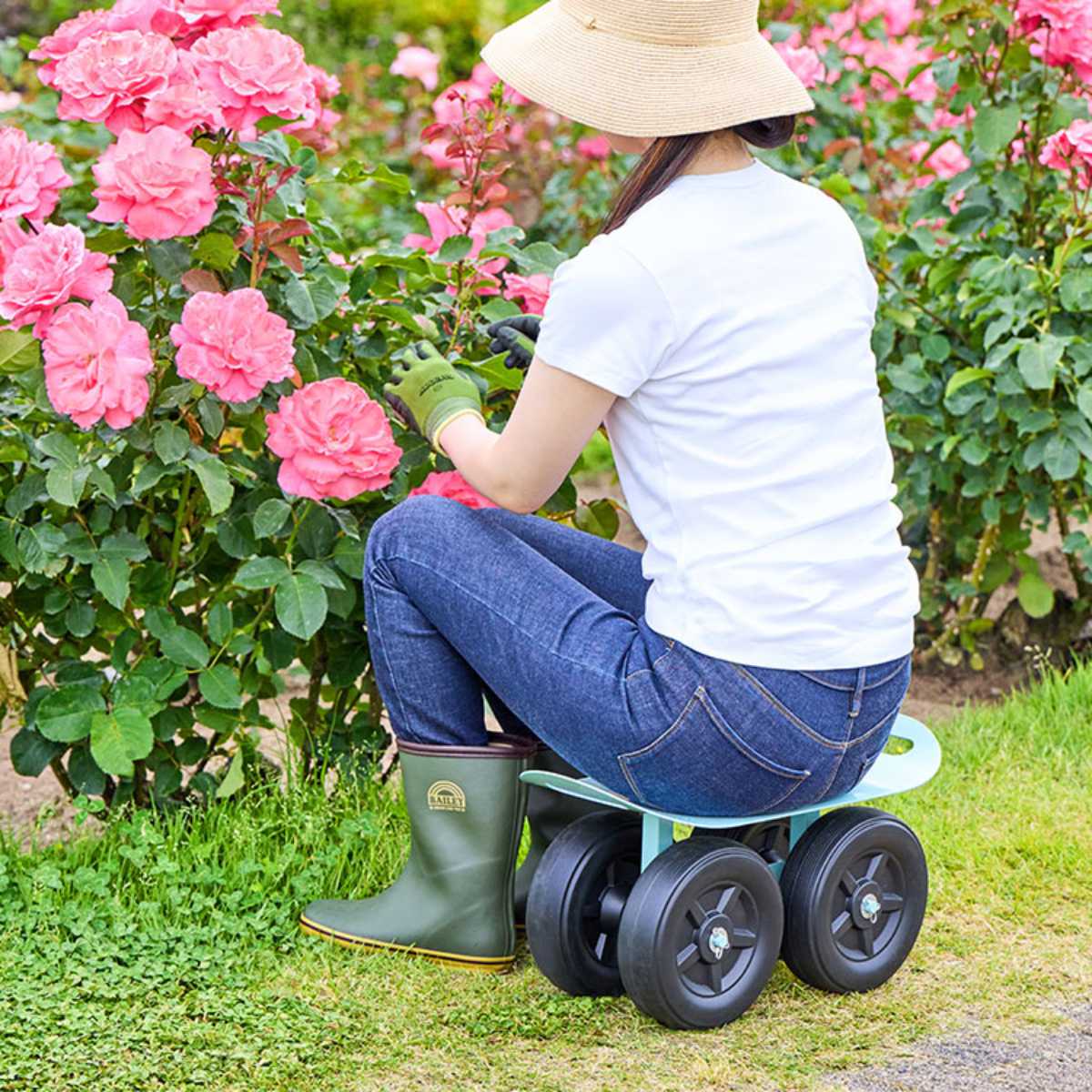 座ったまま移動や方向転換ができ、作業の効率もアップします。休憩時の椅子としても使えて便利です。