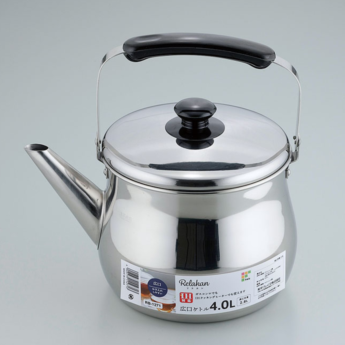 やかん 4L IH対応 リラカン 広口 ステンレスケトル ( ケトル ガス火対応 ステンレス 薬缶 ステンレス製ケトル シンプル 4リットル 湯沸かし 麦茶 お茶 ヤカン 洗いやすい )のレビュー