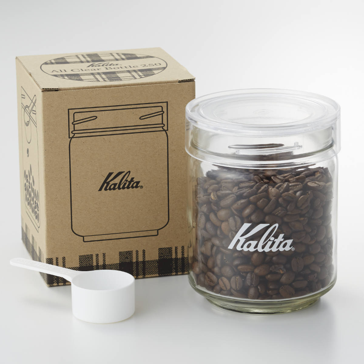 Kalita カリタ 保存容器 750ml All Clear Bottle 250 ( ガラス 日本製 メジャーカップ付き キャニスター コーヒー豆 250g おしゃれ シンプル 容器 )