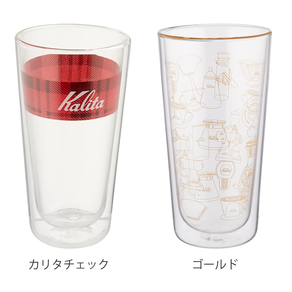 Kalita カリタ タンブラー ダブルウォールタンブラー カリタチェック ゴールド ( ガラス 耐熱ガラス グラス コップ カップ 400ml おしゃれ かわいい ガラスコップ アイスコーヒー アイスティー 耐熱 ) 【ゴールド】