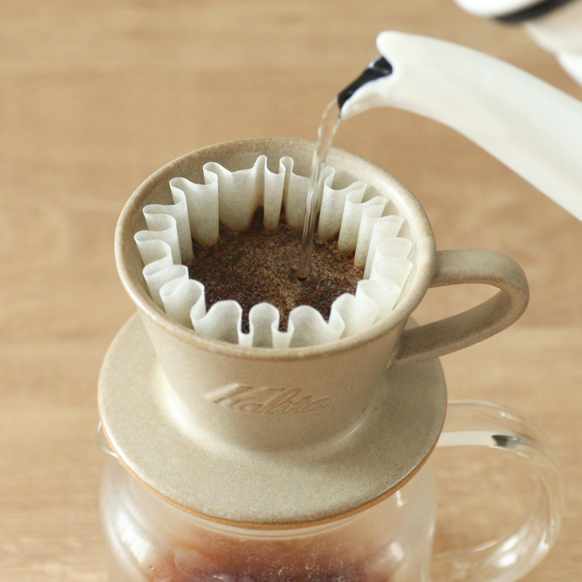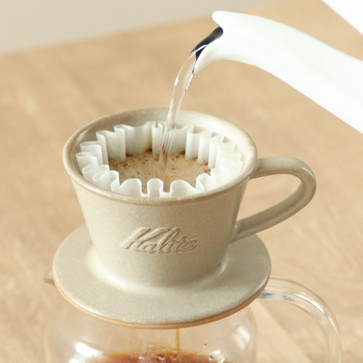 初心者からプロまで使いやすい、カリタオリジナルの「ウェーブ」シリーズ。専用ウェーブフィルター(別売り)と平らな底形状により、お湯が偏っても均一に抽出でき、安定した味わいを楽しめます。