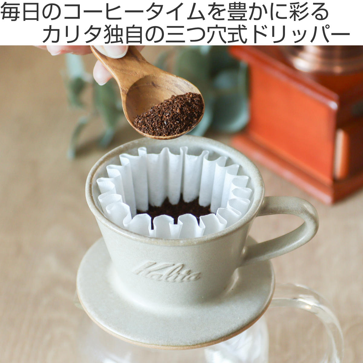 カリタ独自の三つ穴構造のドリッパーは、コーヒー液がとどまらず、雑味成分の抽出が少なく美味しさだけをドリップできます。