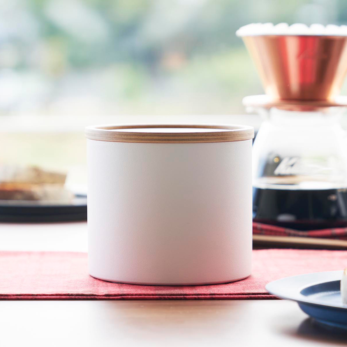 シンプルなホワイトのケースに天然木の蓋を組み合わせた、山崎実業らしいスタイリッシュなデザインです。キッチンやリビングに置いてもインテリアになじみ、見せる収納としても活躍できます。コーヒー好きの方への贈り物にもおすすめのアイテムです。