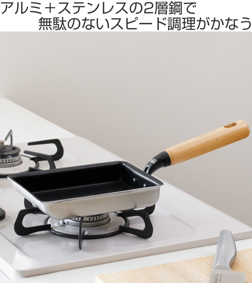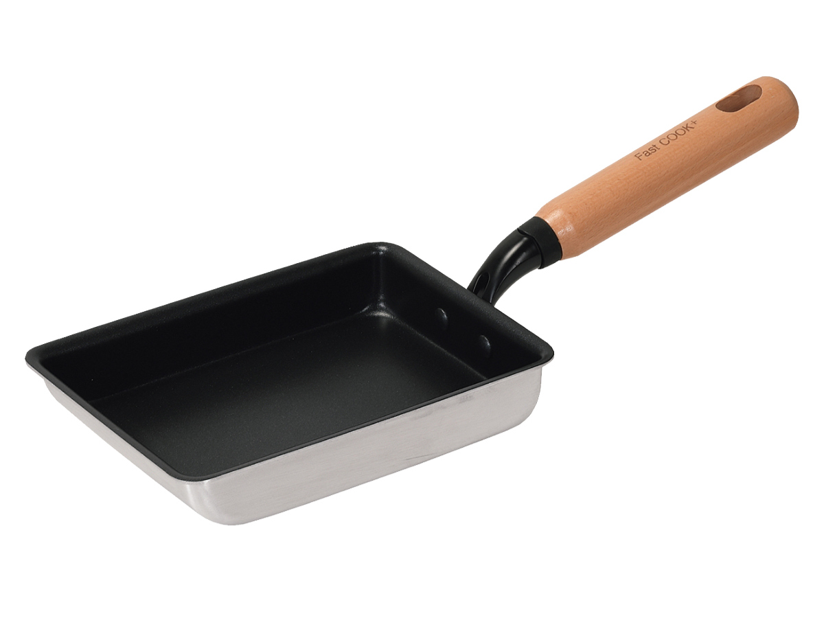 卵焼き器 13×18cm IH対応 ファストクック+ 2層鋼ダイヤモンドコート 木柄 ( ガス火対応 オール熱源対応 玉子焼きフライパン ふっ素加工 軽い 卵焼き 玉子焼き 朝食 弁当 フッ素加工 ステンレス アルミ 2層構造 )