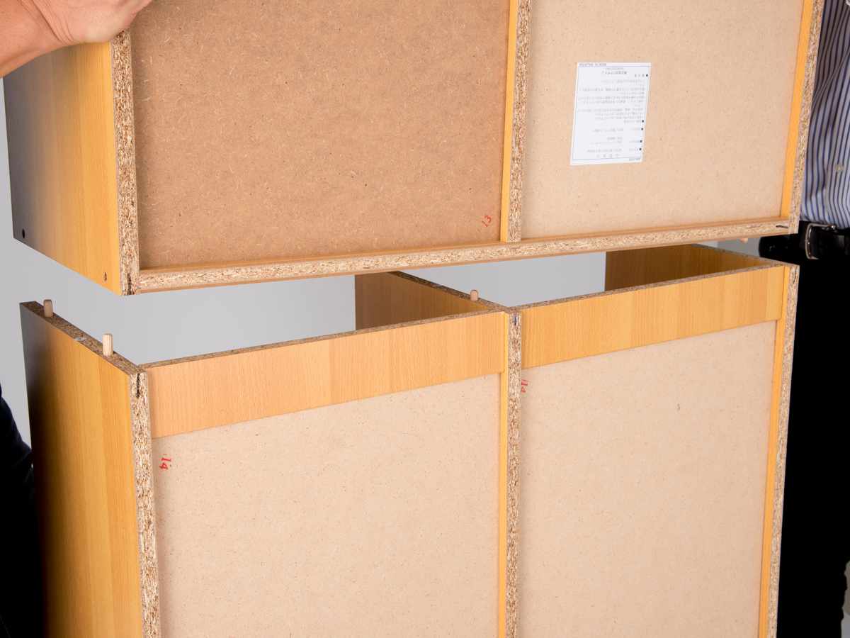 組み立て後は上下に2分割でき、お部屋のレイアウト変更や引っ越しの際にも簡単に運ぶことができます。また、設置時は付属の上下連結部品を使用することでしっかりと固定できます。