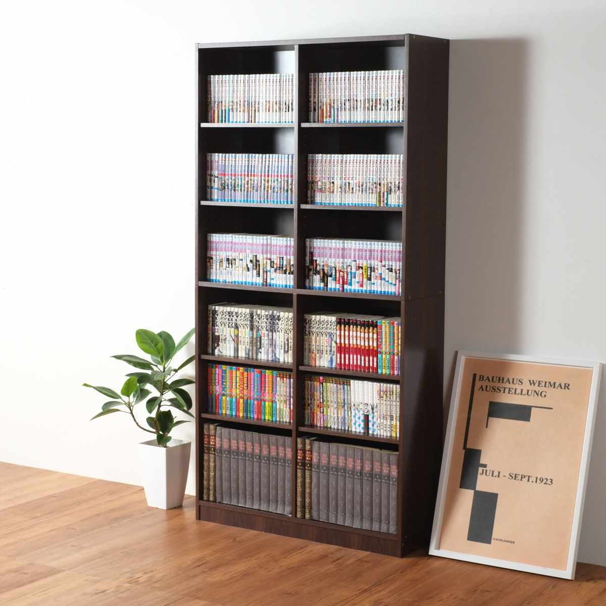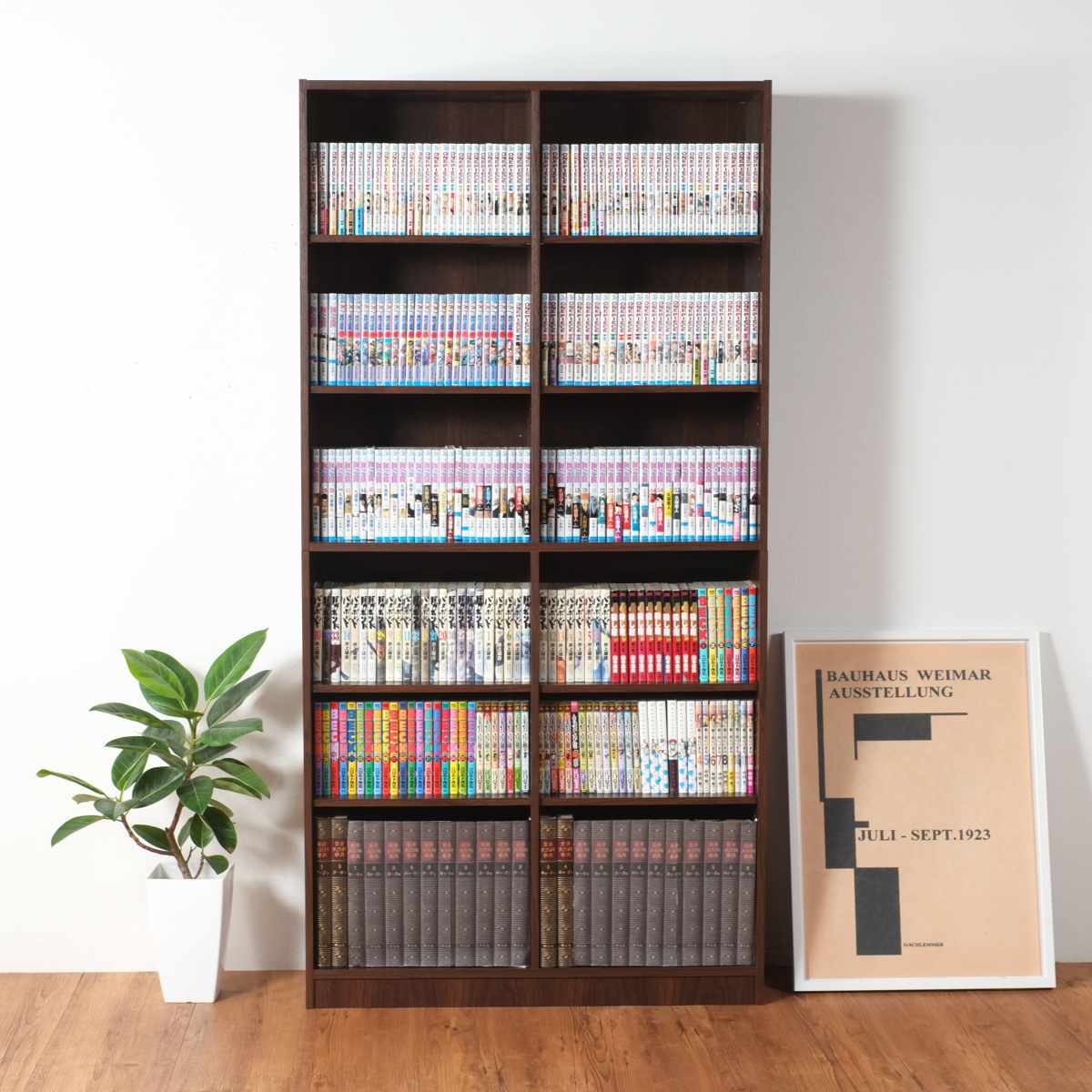 本棚 幅75cm 2列6段 可動棚 大量収納ラック ( ラック 収納 シェルフ 収納棚 大容量 A4対応 壁面収納 リビング収納 コミック 木目調 ブラウン ナチュラル ホワイト ) 【ホワイト】