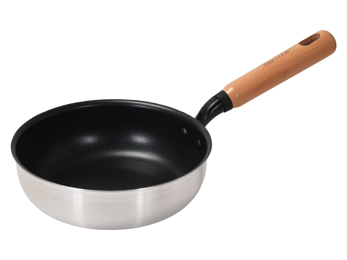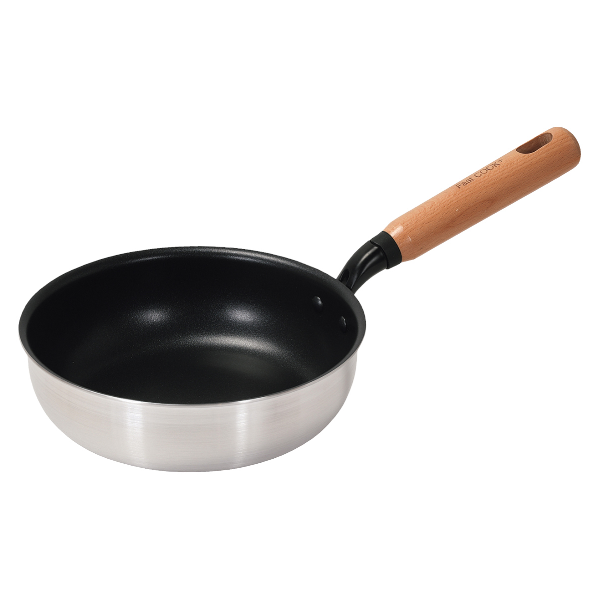 フライパン 20cm 深型 IH対応 ファストクック+ 2層鋼ダイヤモンドコート ( ガス火対応 オール熱源対応 炒め鍋 片手鍋 ふっ素加工 軽い 20センチ いため鍋 フッ素加工 ステンレス アルミ 2層構造 木柄 軽量 )