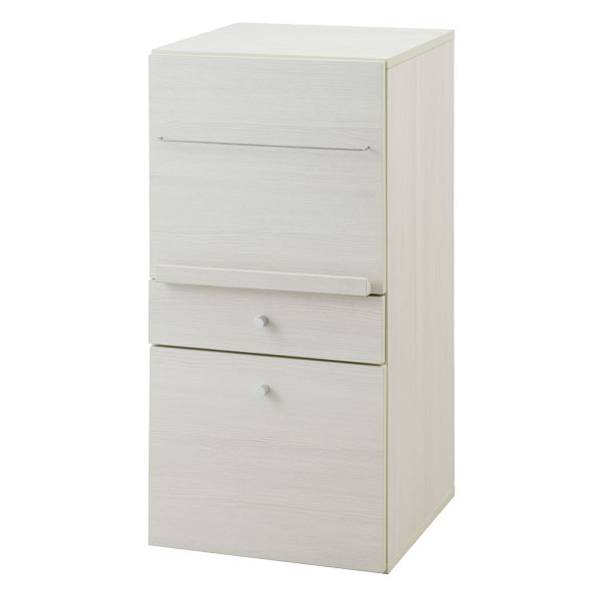 前扉や扉内、2杯の引き出しと収納箇所がたっぷりの前扉&引出しタイプ。グッズは隠して収納したい派の方におすすめです。