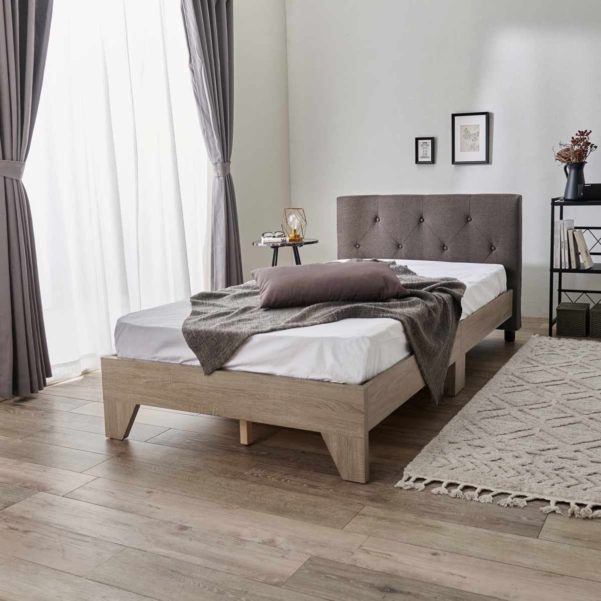 ファブリックのヘッドボードは、リラックスできる心地よい質感です。ひし形のステッチが上品なアクセントになり、約10cmの厚さが高級感と重厚感を演出します。