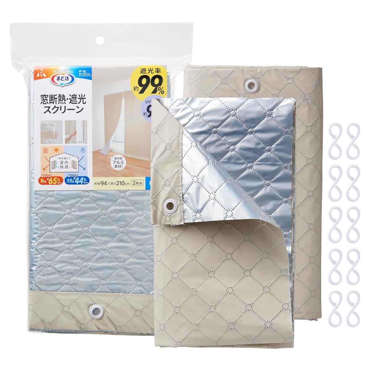窓 断熱 窓断熱 遮光スクリーン まど活 ロング 2枚組 94×210cm ( 遮光 カーテン UVカット 節電 冷房 暖房 省エネ エコ 目隠し アルミ 紫外線カット 日焼け 日よけ 暑さ対策 寒さ対策 )