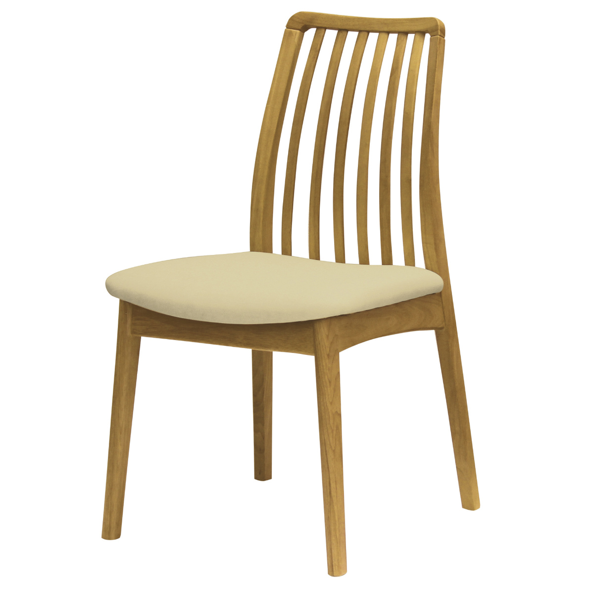 ベーシックでシンプルなデザインのアームレスチェアです。フレームには、木の温かみを感じるラバーウッド無垢材を使用しています。背もたれが細い棒状で抜け感があり、ダイニングやリビングに置いても空間を広く見せてくれます。
