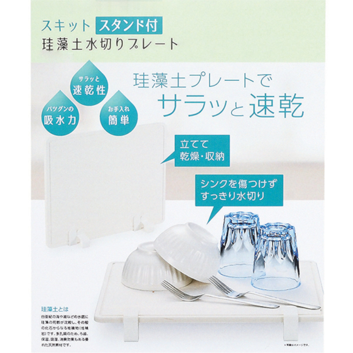 水切りトレー スキット スタンド付 珪藻土 水切りプレート Sサイズ ( 珪藻土トレー 水切りトレイ 水切り プレート 脚付き 速乾 吸水 ドライングボード 珪藻土トレイ 水切りマット 乾燥 お手入れ簡単 キッチン シンク上 ホワイト )